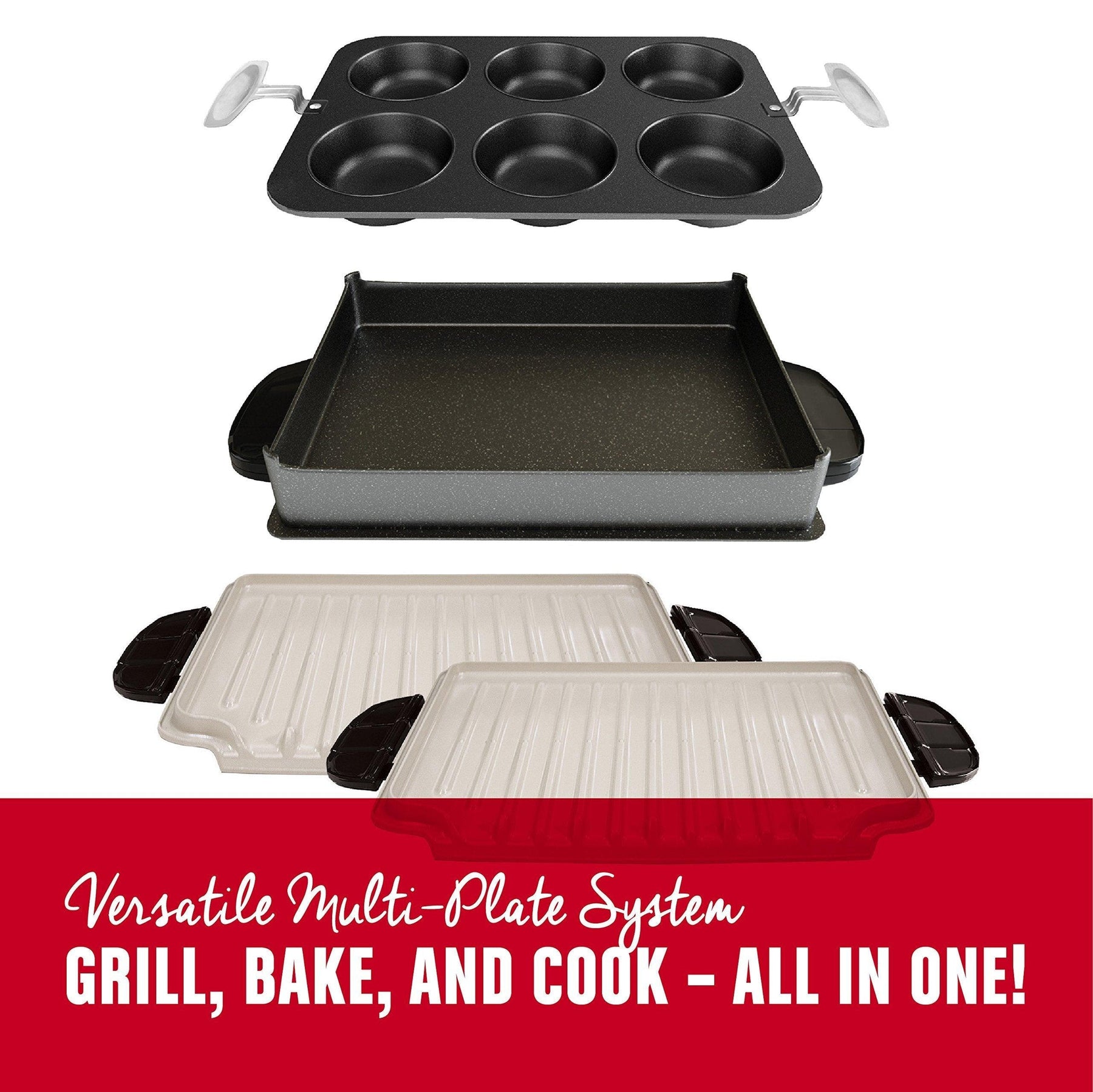 George Foreman GRP4800R Multi-Plate Evolve Grill, (Ceramic Grilling Plates, Deep-Dish Bake Pan, and Muffin Pan Included), Red