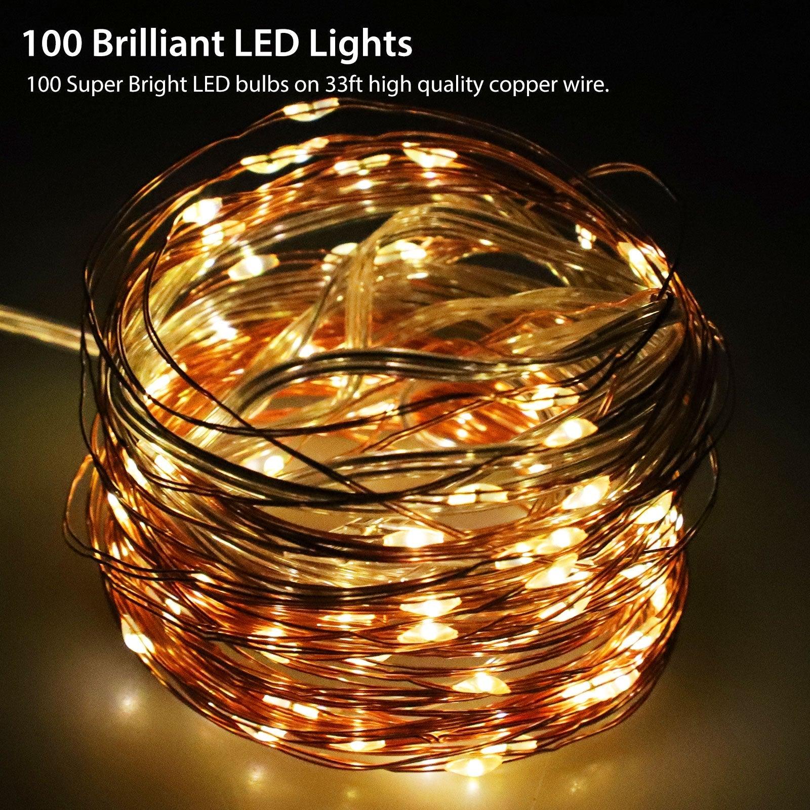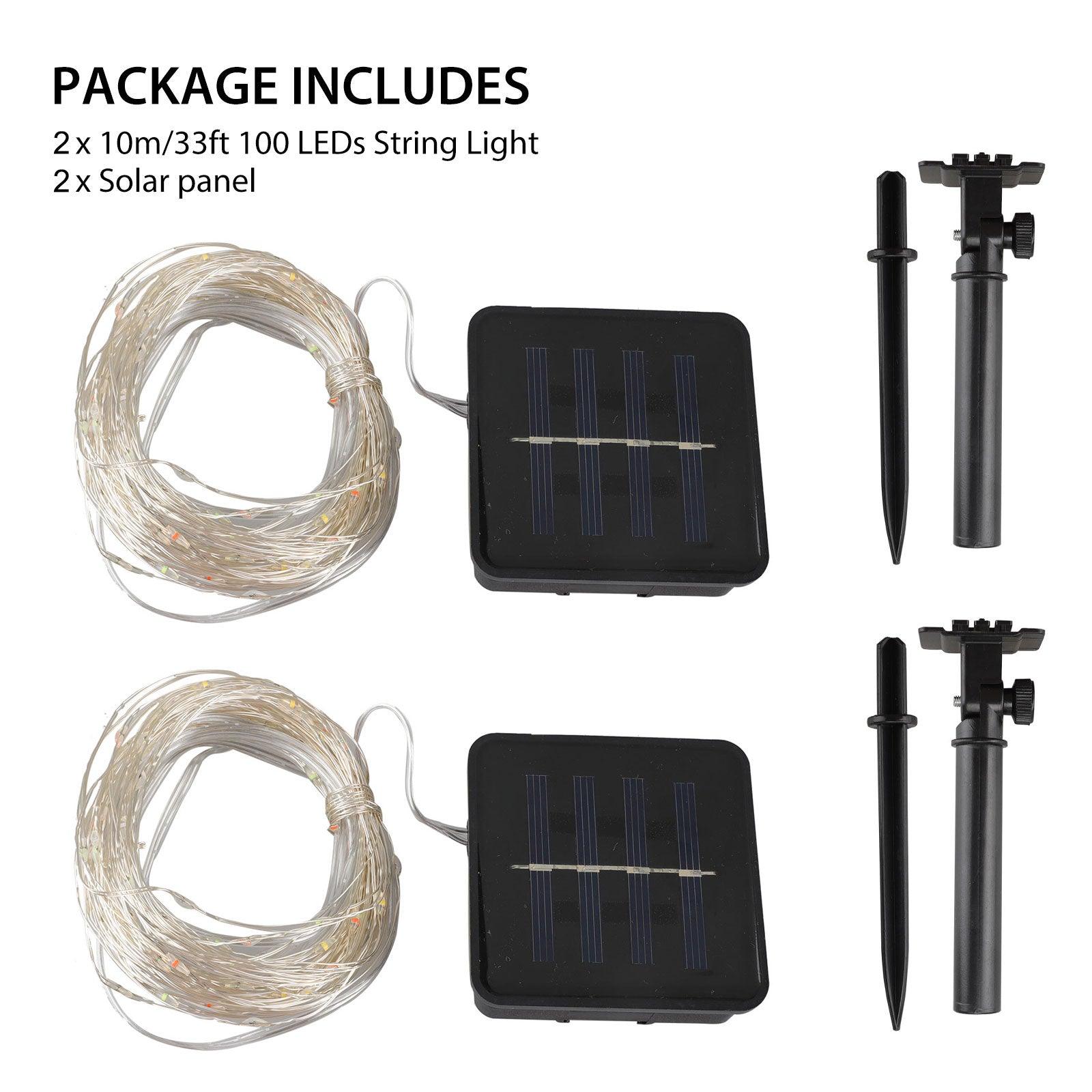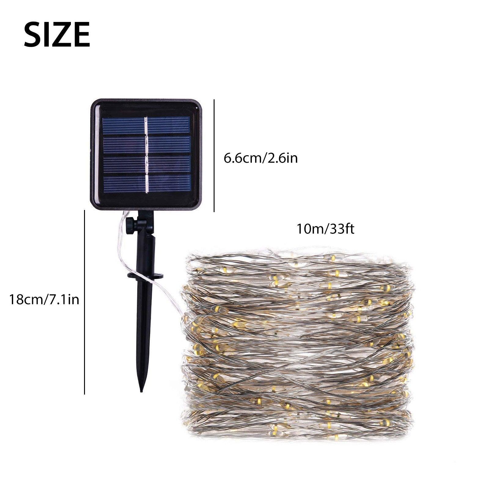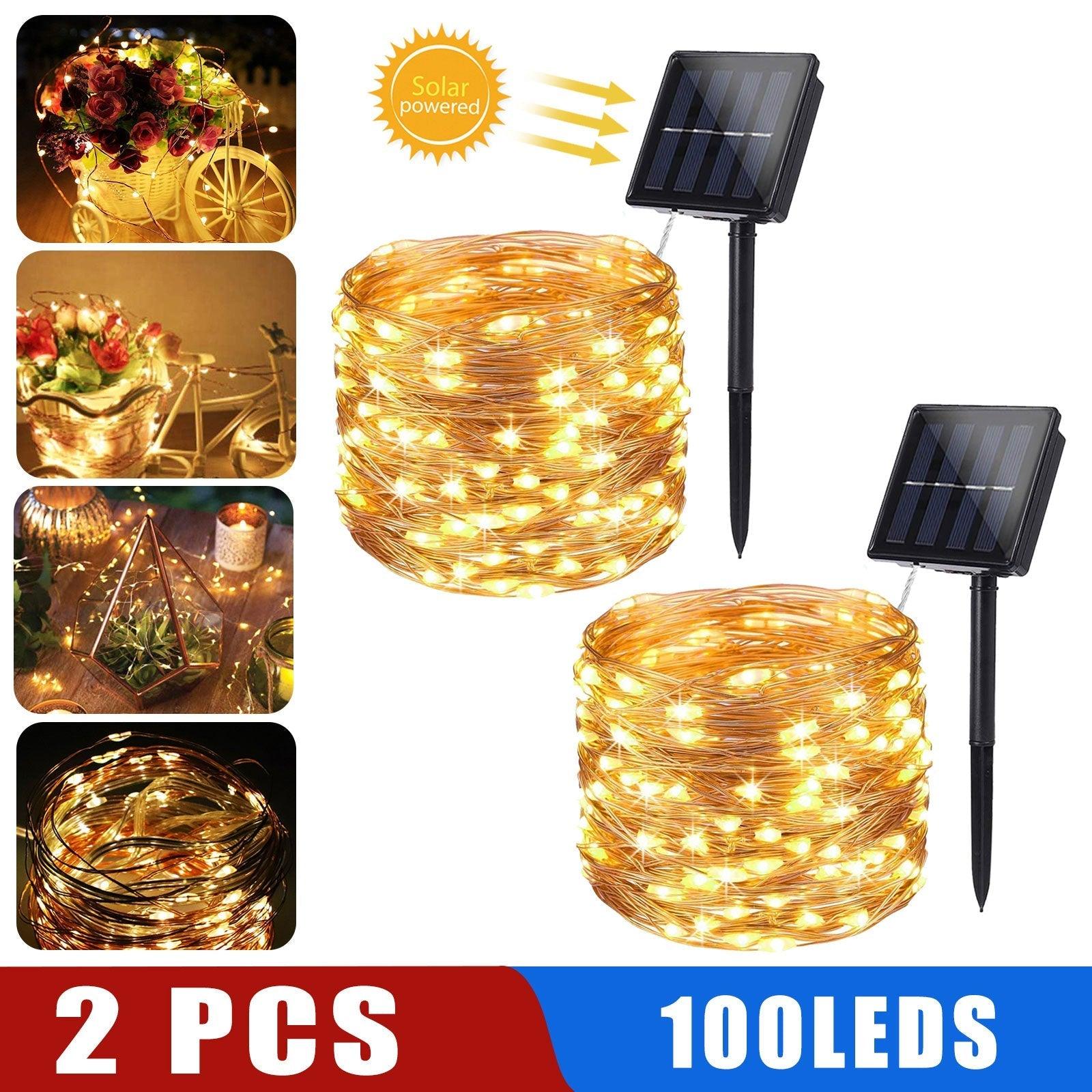 2/1PCS TSV Solar Powered String Lights outdoor, 100LED 10M/ 33Ft Solar Fairy Lights 2 Modes Waterproof Outdoor/Indoor Garden Lights Copper Wire Lighting for Wedding, Patio, Yard, Festoon, Christmas