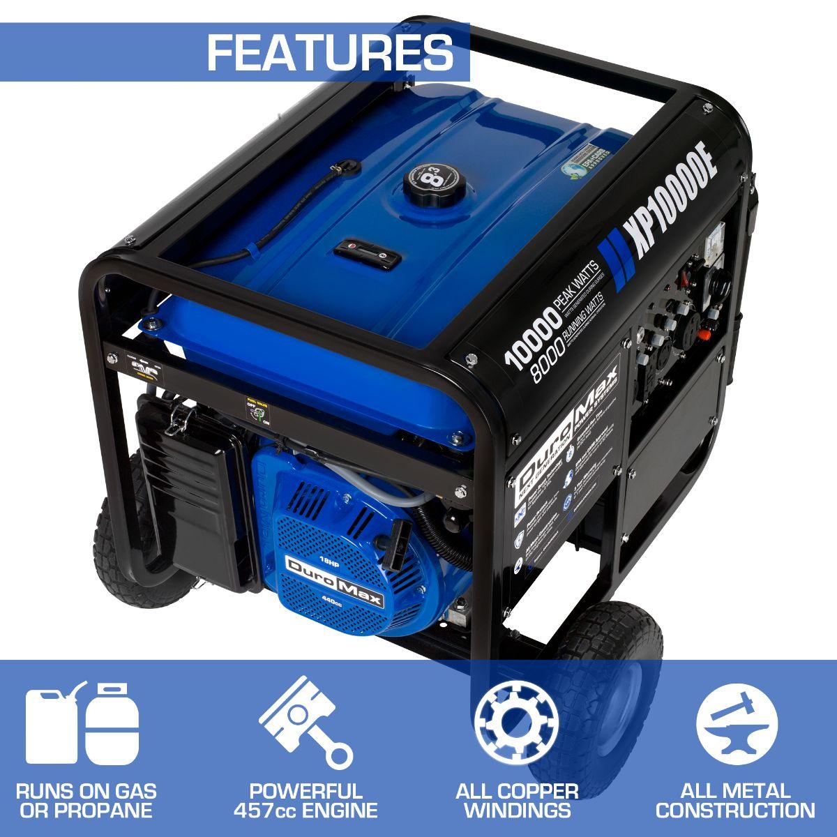 DuroMax XP10000E Gas Powered Portable Generator - 10000 Watt -Electric Start- Home Back Up & RV Ready, 50 State Approved