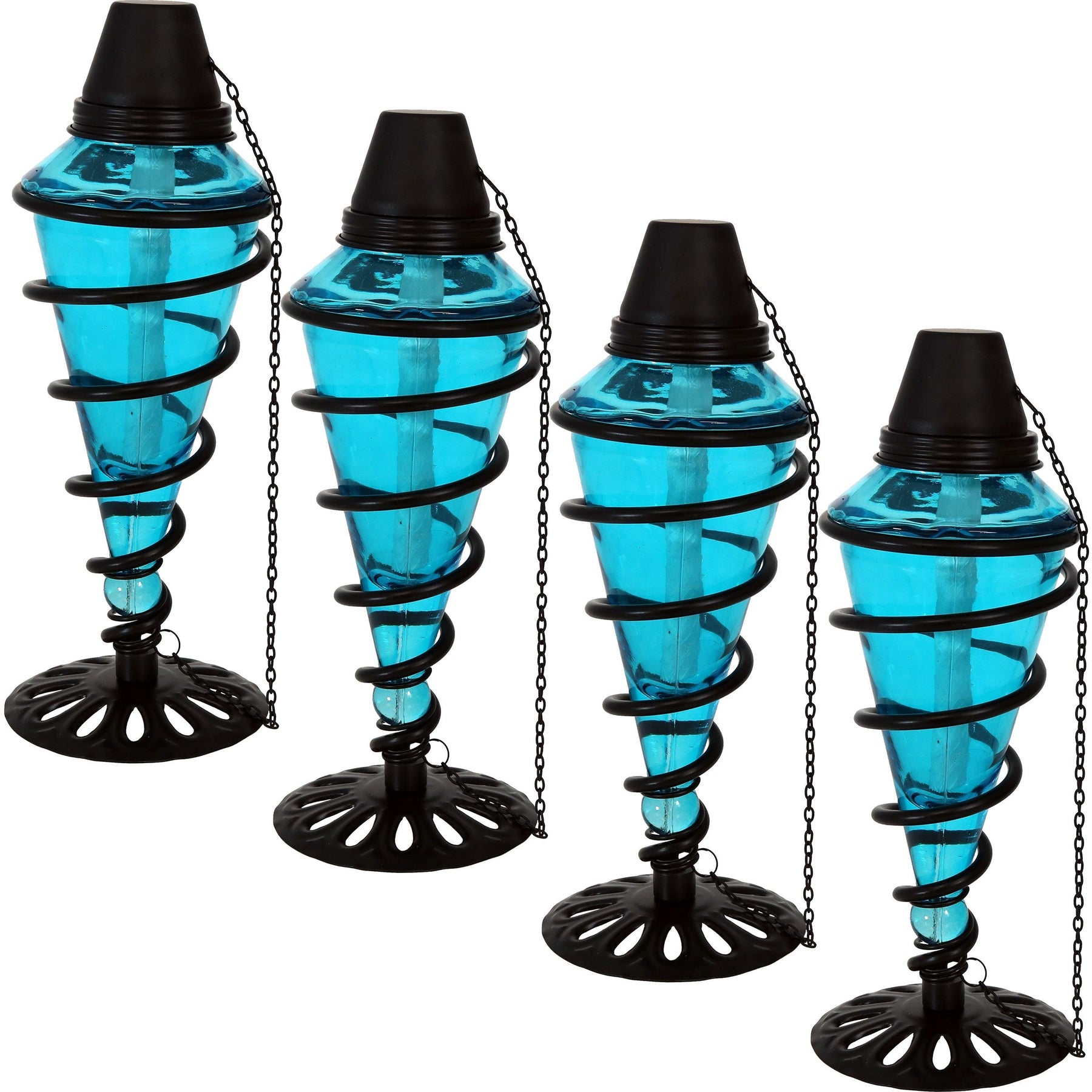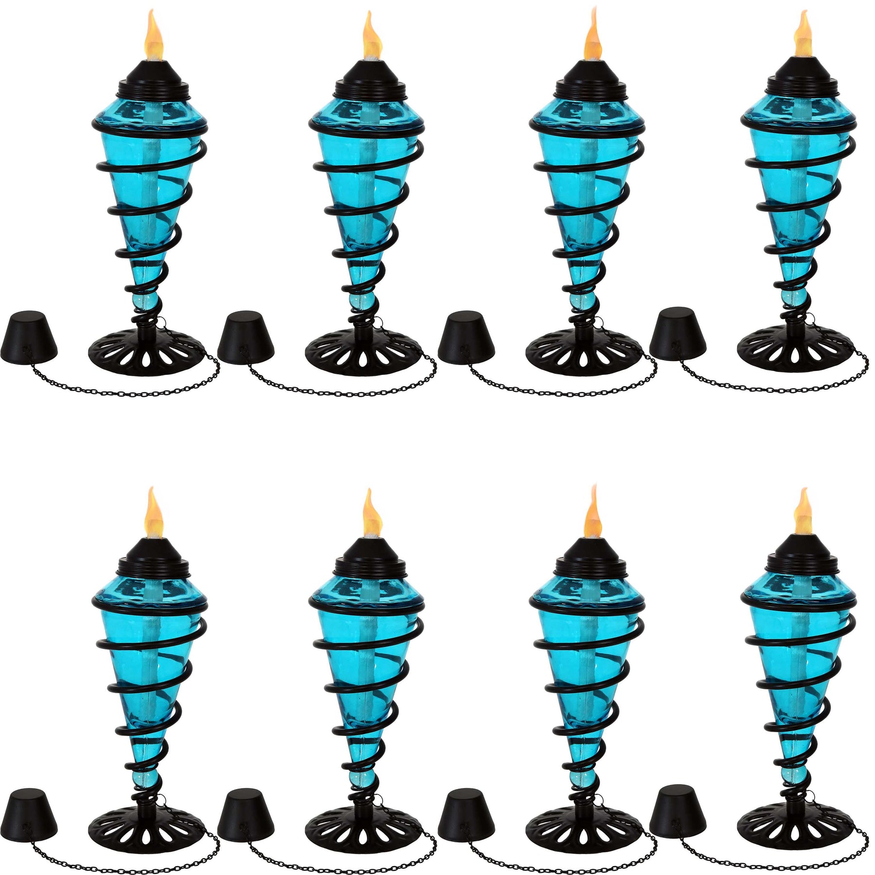 Sunnydaze Blue Glass Outdoor Tabletop Torches - Citronella Torch - Set of 8