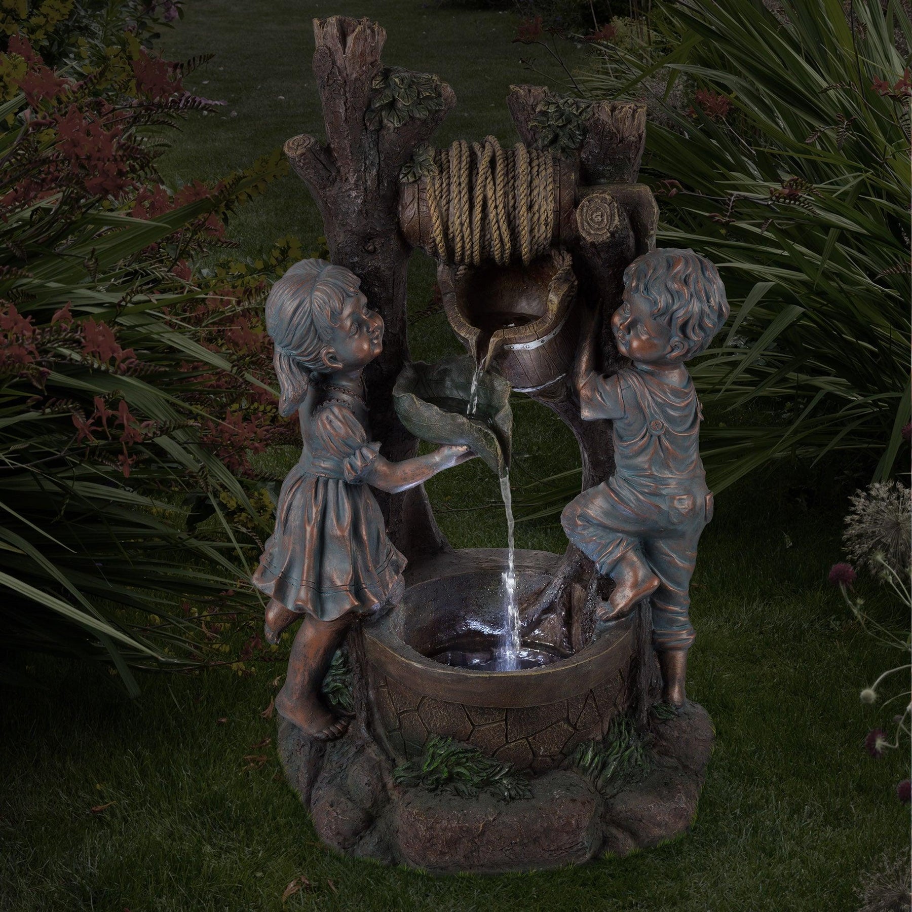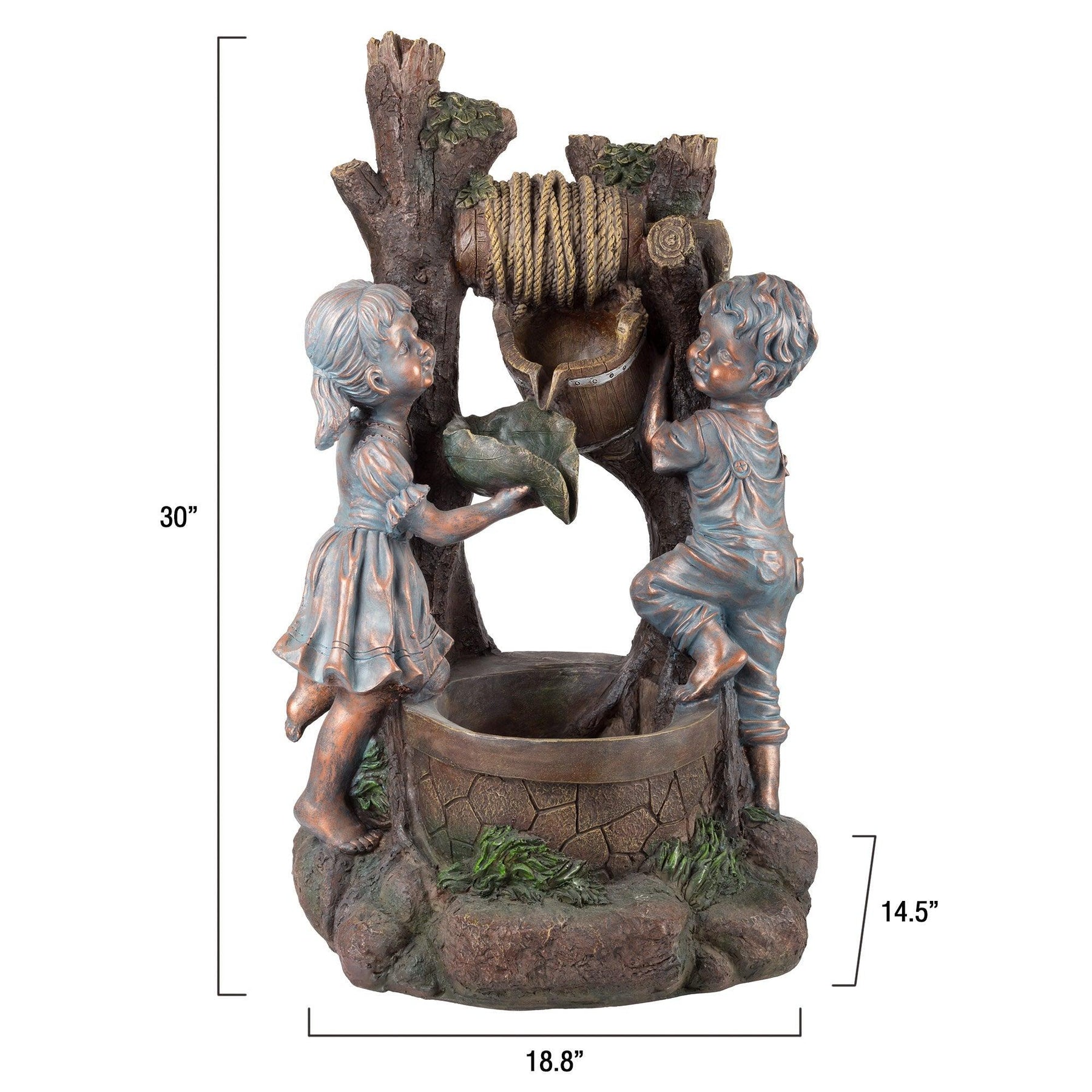 Children at the Well Water Fountain with LED Lights- Lighted Outdoor Fountain with Antique Design for Decor on Patio, Lawn and Garden by Pure Garden