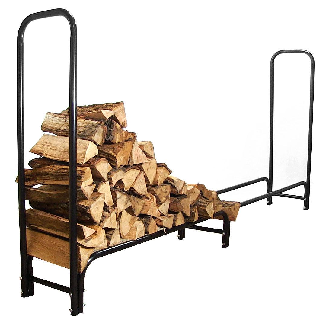 Sunnydaze Log Rack 8' Black Steel Outdoor Firewood Stacker Storage Holder