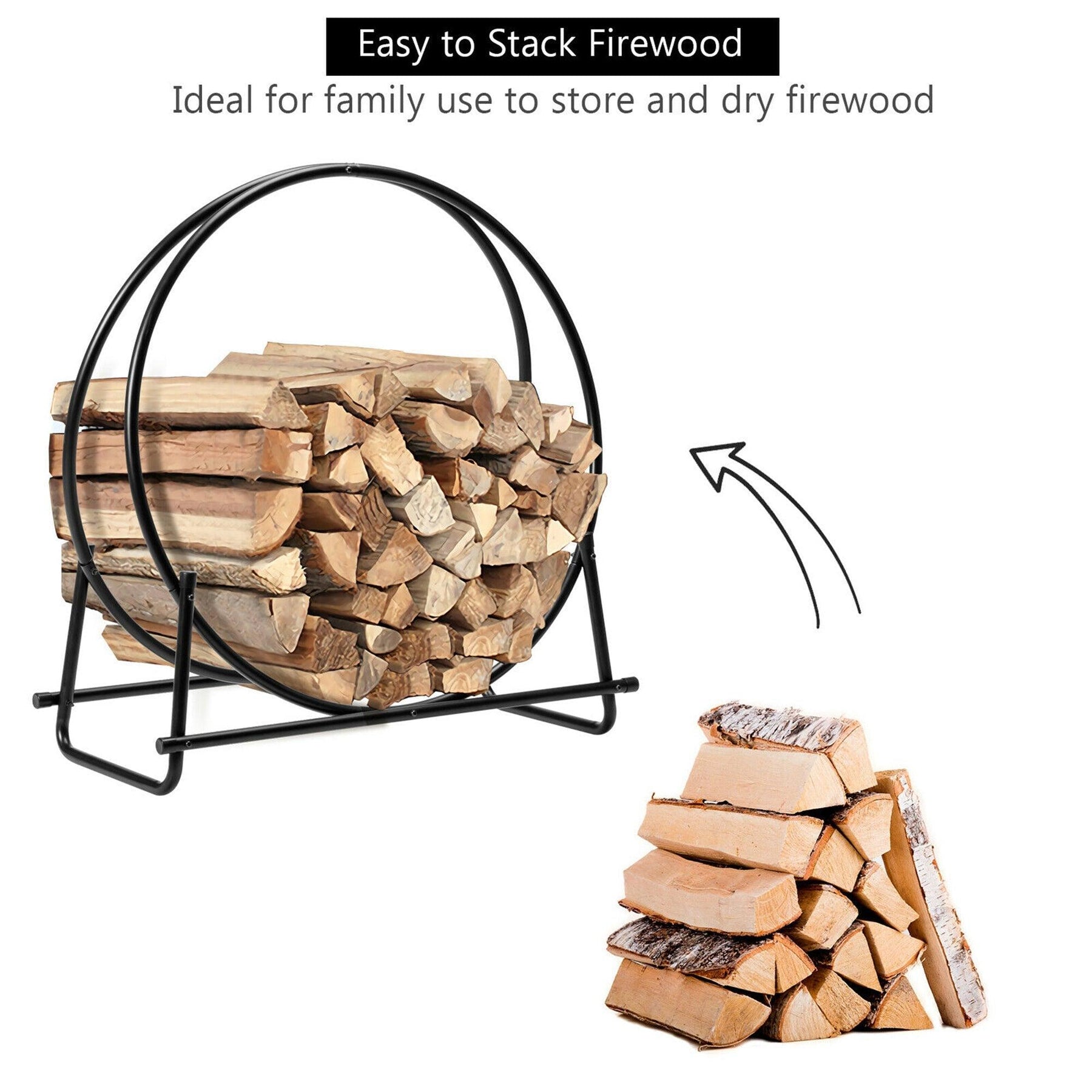 Gymax 30'' Tubular Steel Log Hoop Firewood Storage Rack Holder Round Display