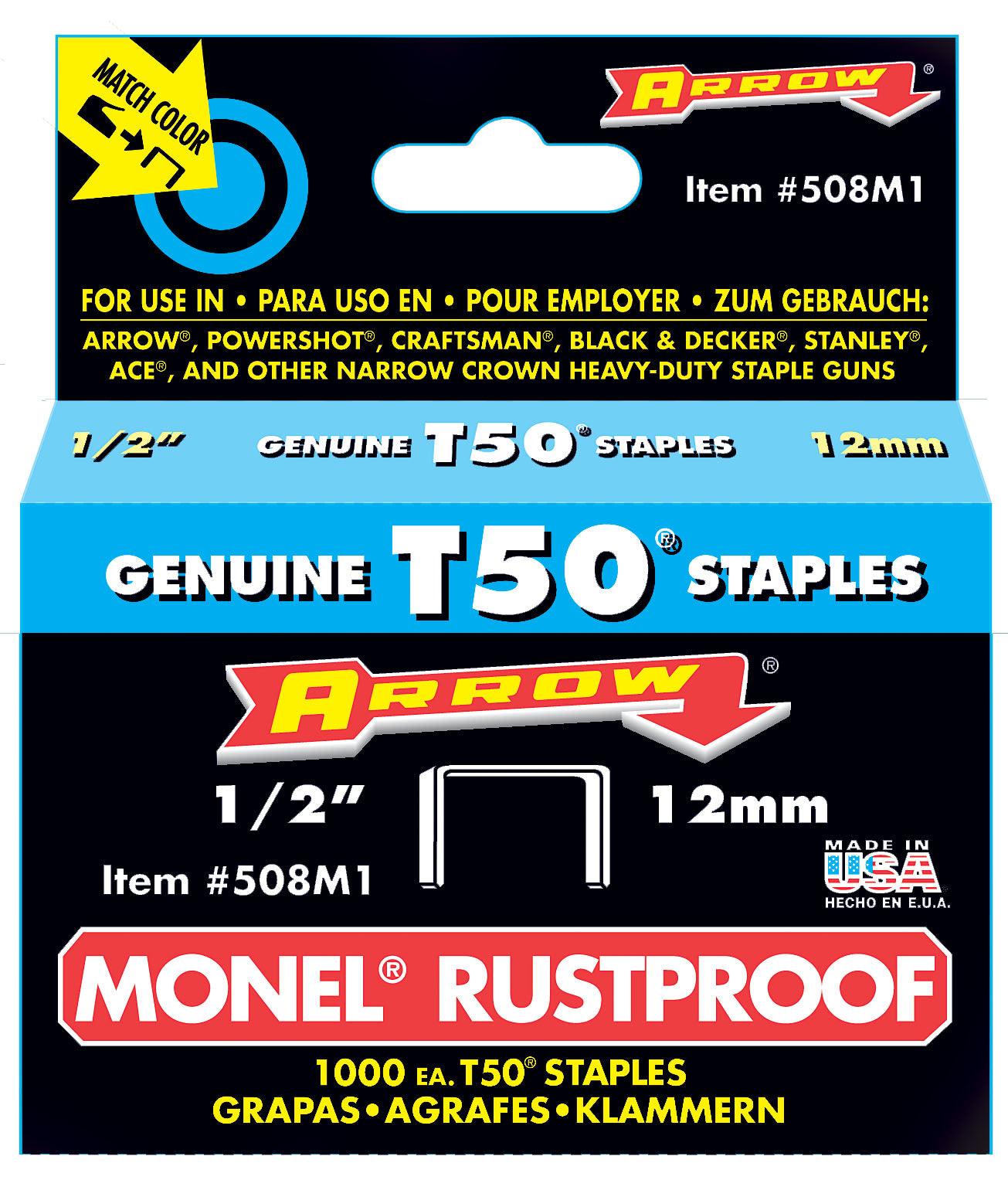 Arrow Fastener 1/2-Inch T50 Monel Staples, 1000 Count