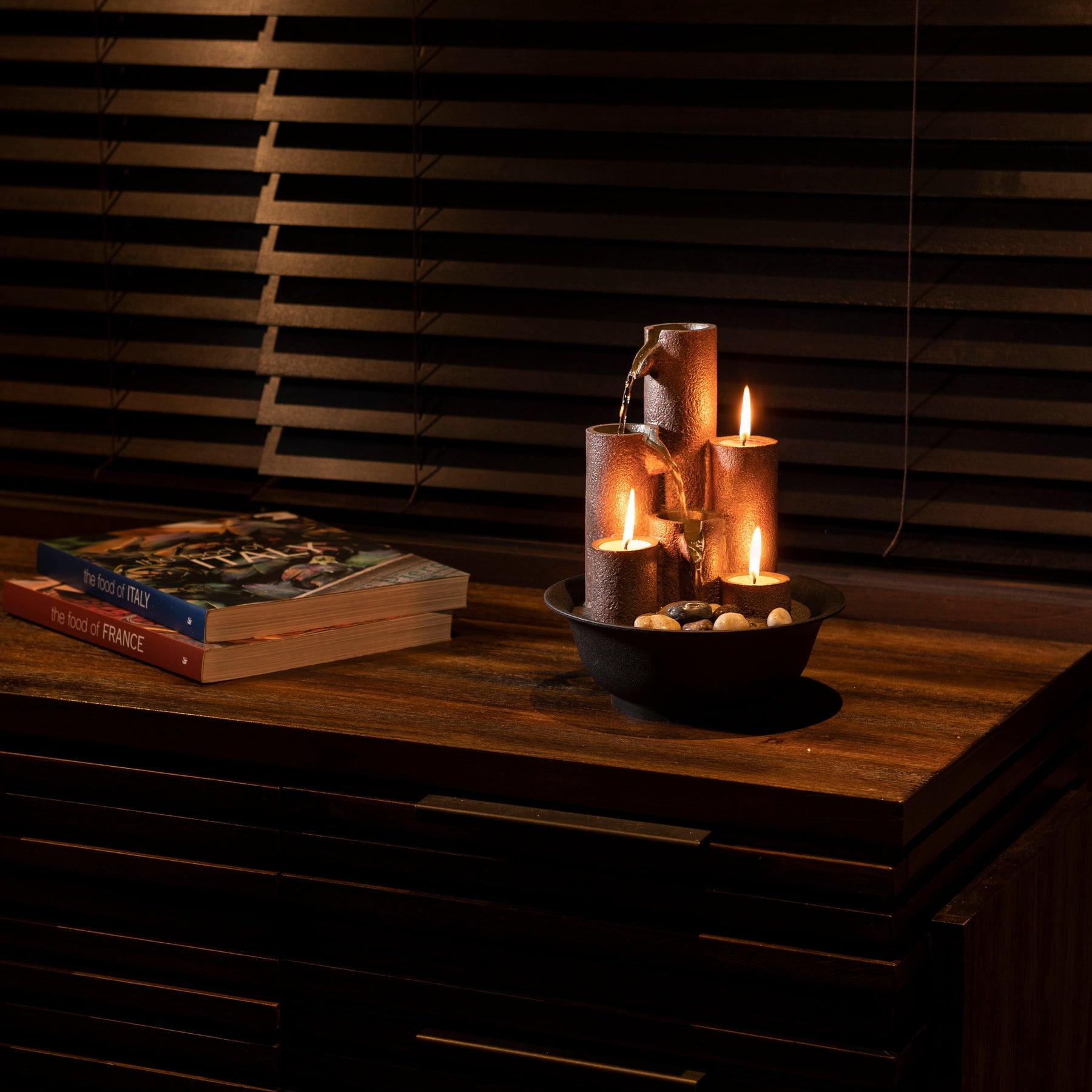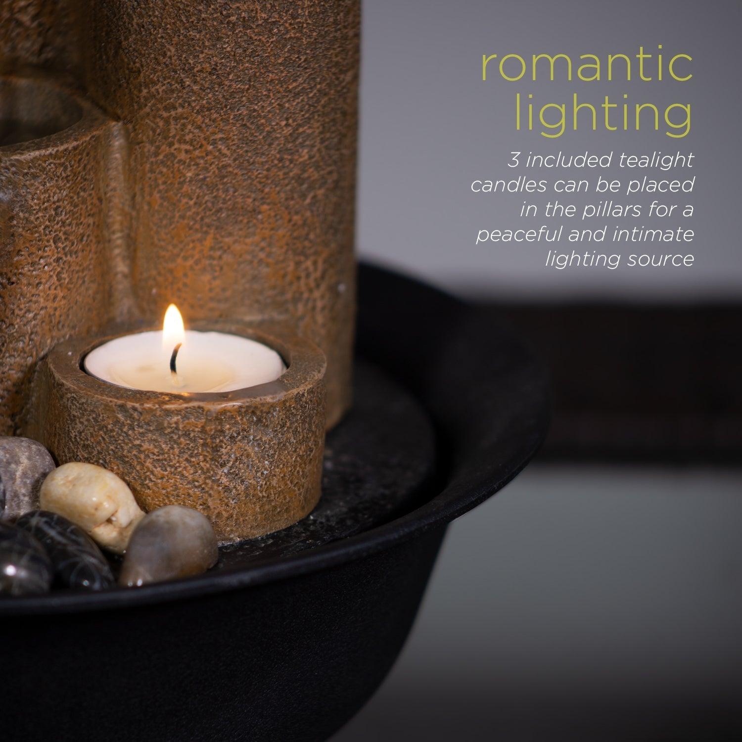 Alpine Corporation 11" Pouring Tiers Tabletop Fountain with 3 Candles