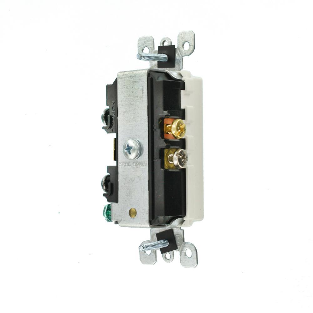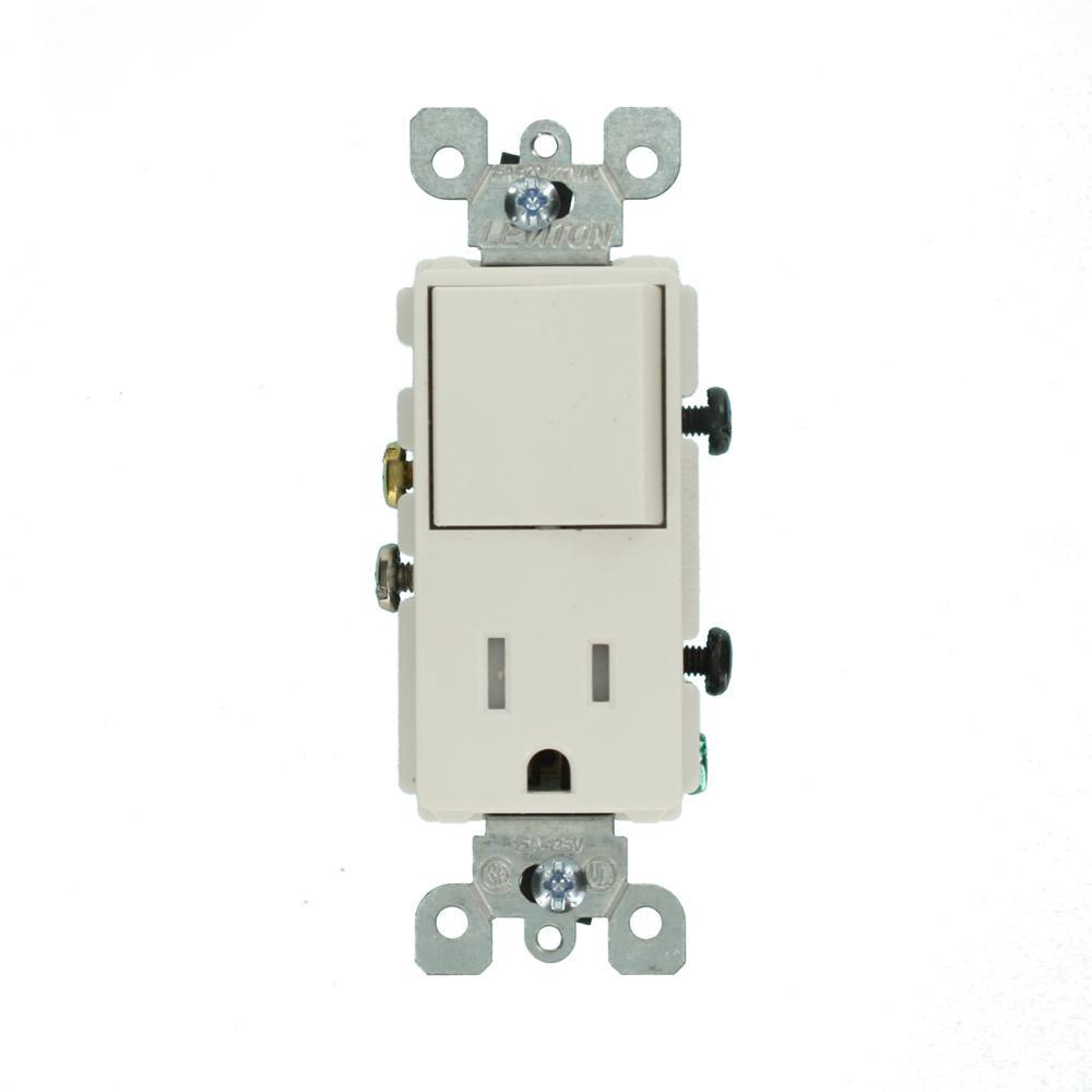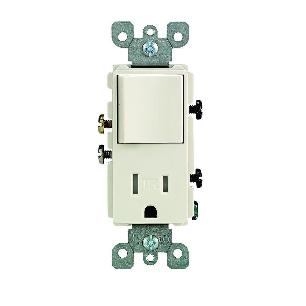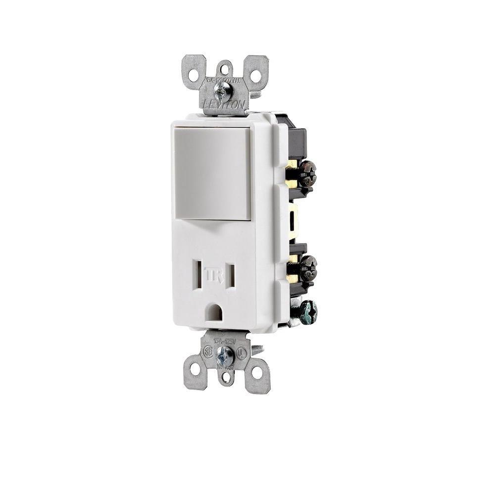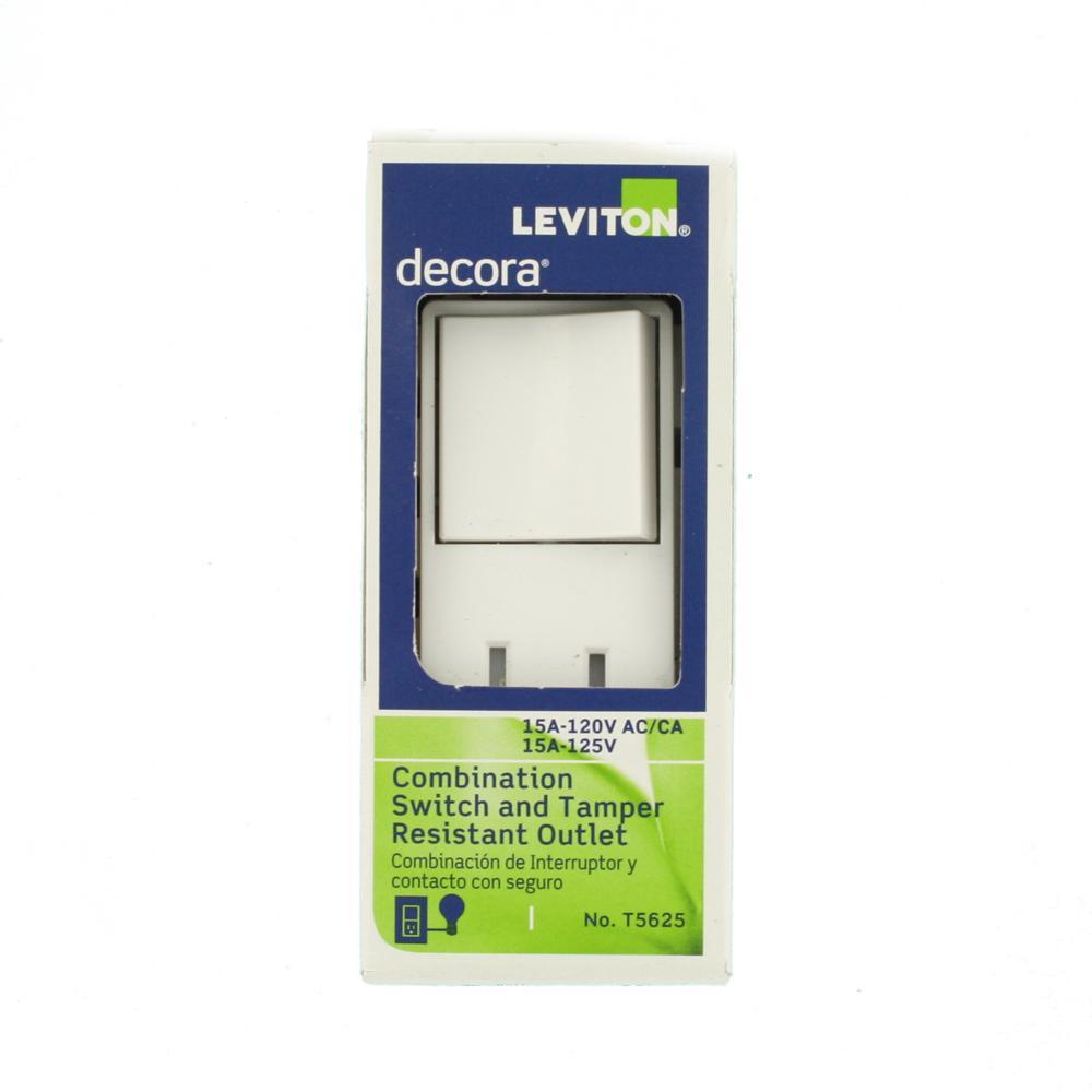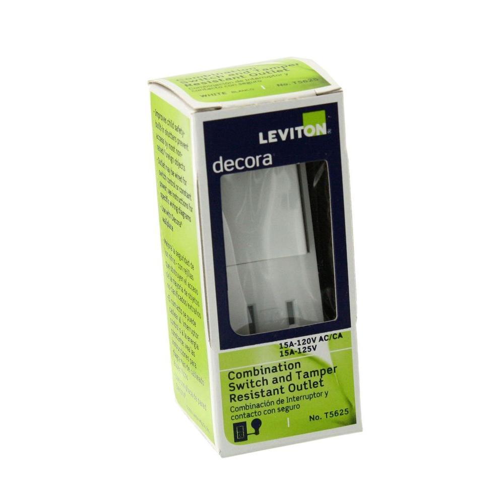 The Leviton Decora 15 Amp Tamper-Resistant Combination Switch and Outlet enhances your child's safety by helping to block the insertion of small objects. Designed to provide either switch control or constant power. This versatile device has a space-saving design that fits multiple devices in a single wall box.