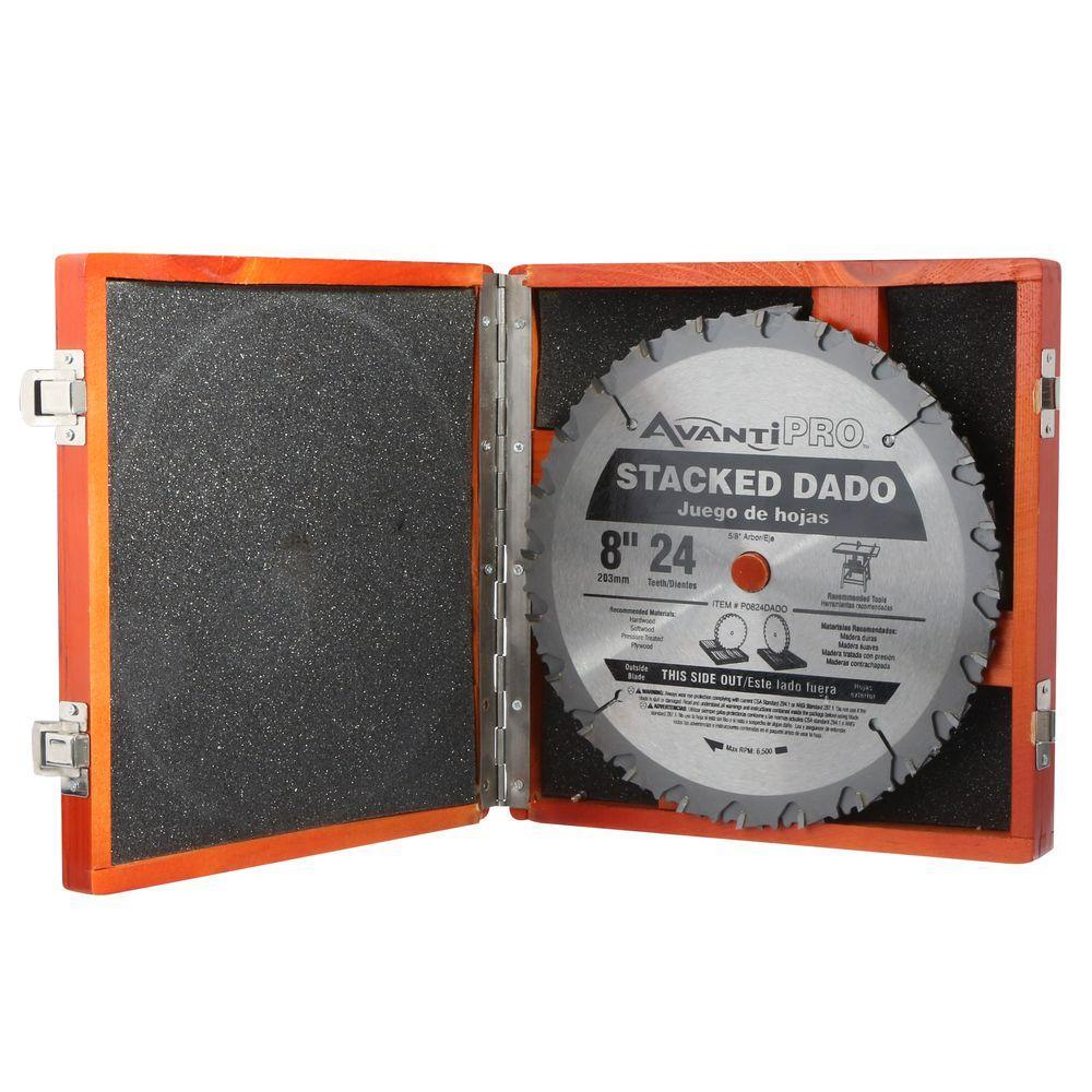 Avanti Pro saw blades are high-performance blades that were specifically designed for the professional. The 8 in. 24-Tooth Stacked Dado Saw Blade Set gives you blades that produce fast and clean cuts in a variety of materials. They were made with durable carbide for long cutting life.