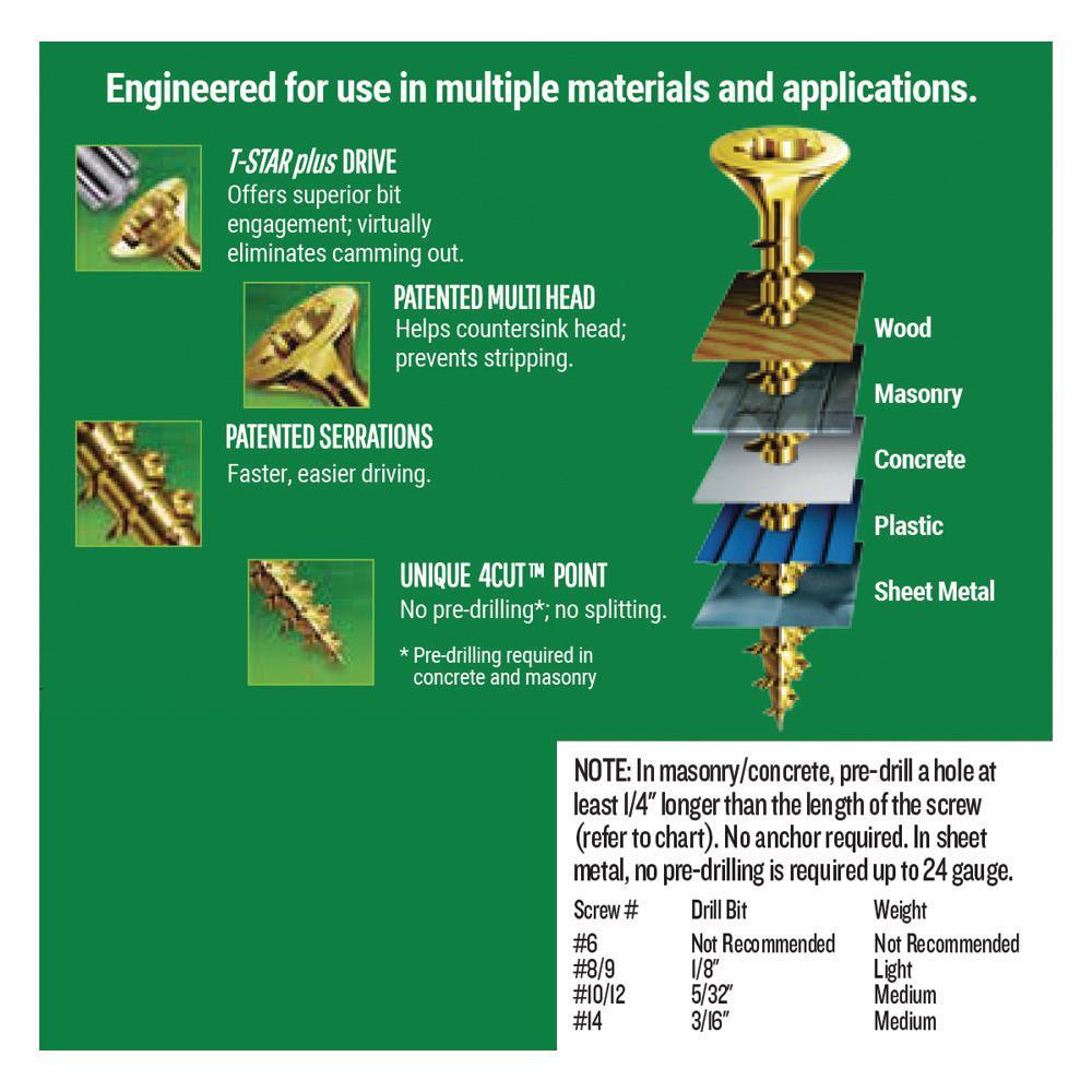 Patented MULTIhead countersinks the screw head flush in wood. Keep a smooth surface on your project for greater design and functional qualities.