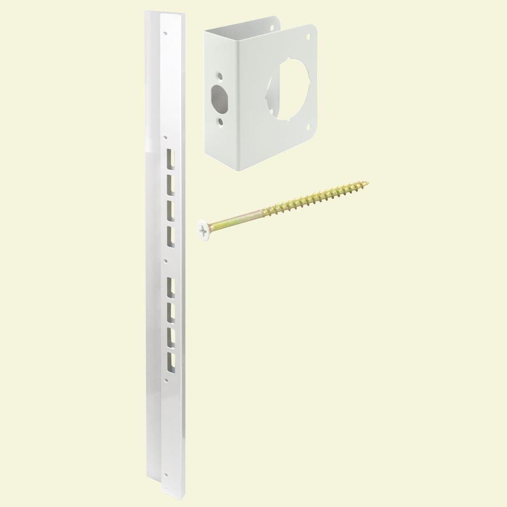Repair and reinforce wood door jambs with a thickness of 1-3/4 in. with the Defender Security Mega Jamb Door Reinforcement Kit for 2-3/8 in. Backset. This reinforcement kit offers a steel construction with a paintable white powder-coated finish.
