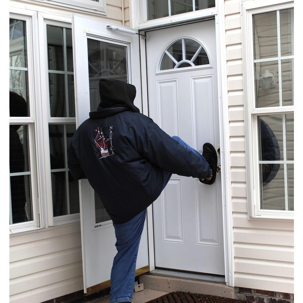 The StrikeMaster II Pro stops home invasions by preventing door kick-ins. FBI statistics show that the majority of home break-ins are caused by burglars kicking in the door. Unless extra reinforcement is taken to strengthen the door frame, a forced entry of kick-in burglary will split open the wooded door frame around the lock. StrikeMaster II Pro provides real protection. It's the easiest to install door jamb and hinge reinforcement product available. Its 4 ft. of customized steel turns soft wood door frame casing into solid steel. The StrikeMaster II Pro's patent pending double steel plate design along with extra long screws, bite into the wall studs surrounding the door frame reinforcing the casing and door hinges. Now, the StrikeMaster II Pro comes with the Door Edge Pro which reinforces the door and keeps it from spliting during kick-in attempts. The StrikeMaster II Pro has been installed on thousands of homes without a single failure. It does not require additional locking devices. It is powder coated white to match most homeowners' trim color or can be painted to match any decor. The average homeowner can install it in less than 30 minutes. No cutting or removal of the door casing is necessary. The StrikeMaster II Pro will fit any outside door frame including doors with side-lights and double entry doors. Also repairs and strengthens already broken door frames.