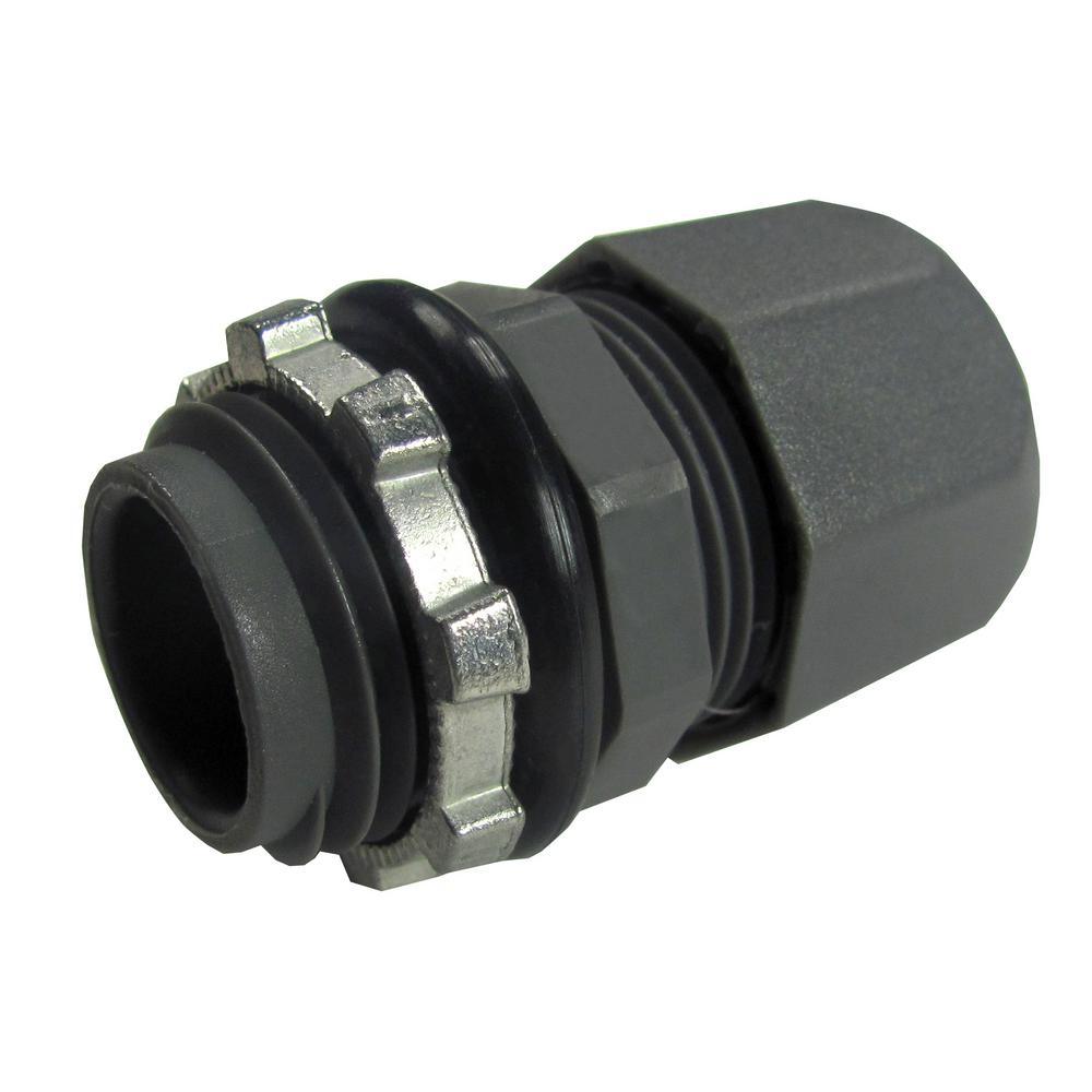 The Halex 1/2 in. ACC Non-Metallic Strain Relief Cord Connector is intended for indoor applications and is UL and CSA safety listed. This standard fitting is made of plastic and is for use with galvanized rigid conduit.