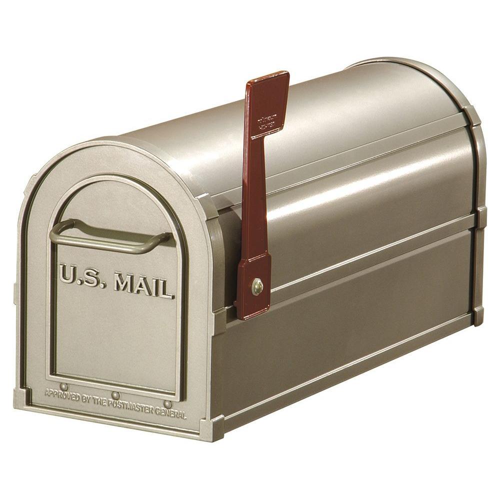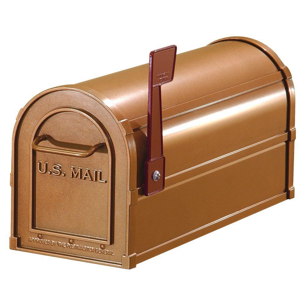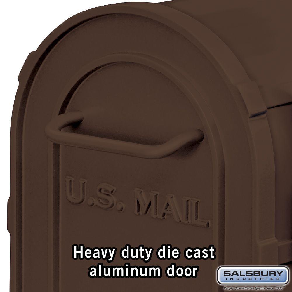 The Salsbury Industries 4800 Series Post-Mount Antique Rural Mailbox features durable aluminum construction and a long-lasting powder-coated finish. Approved by the Postmaster General, this mailbox is rust and impact resistant. This mailbox comes pre-assembled for easy installation and has a secure magnetic catch and reinforced ridges for added strength.