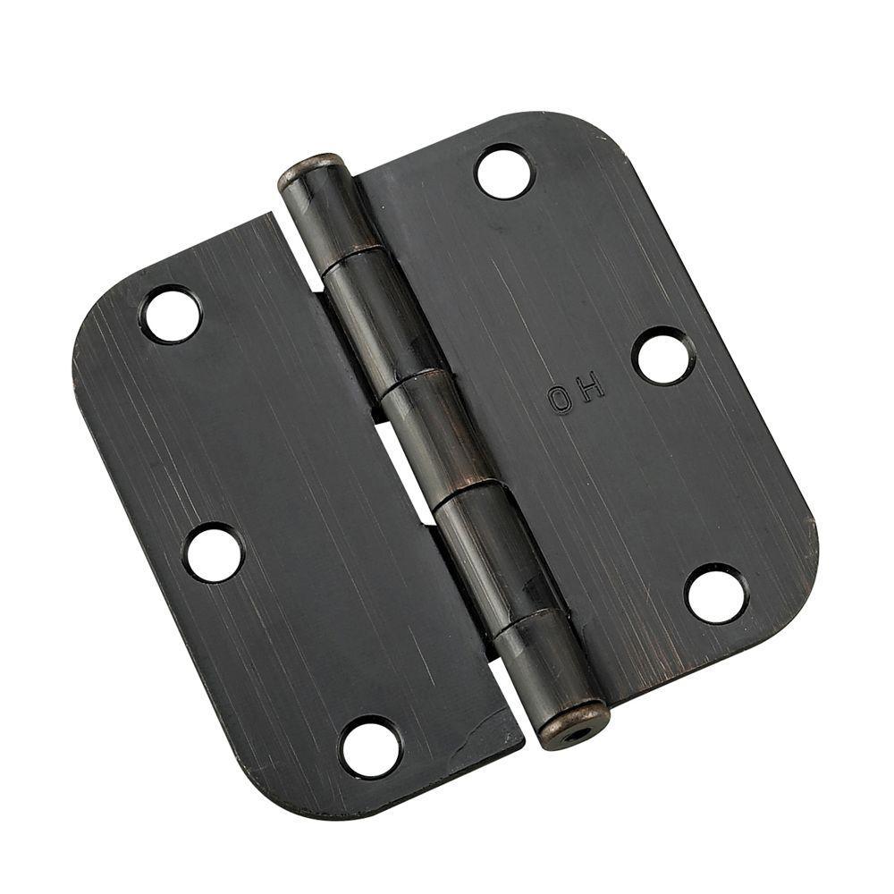 (2-Pack) 3-1/2 in. x 3-1/2 in. Antique Brass Full Mortise Butt Hinge with 5/8 in. Radius