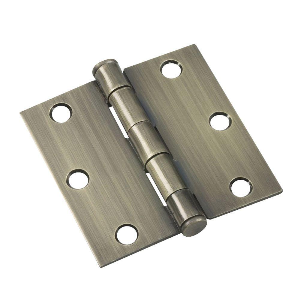 (2-Pack) 3-1/2 in. x 3-1/2 in. Antique Brass Full Mortise Butt Hinge