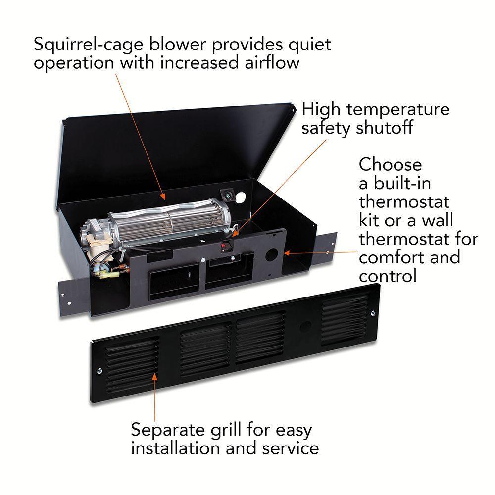 1,000-Watt fan-forced toe-kick heater at 240-Volt provides heat with a durable, steel-finned element