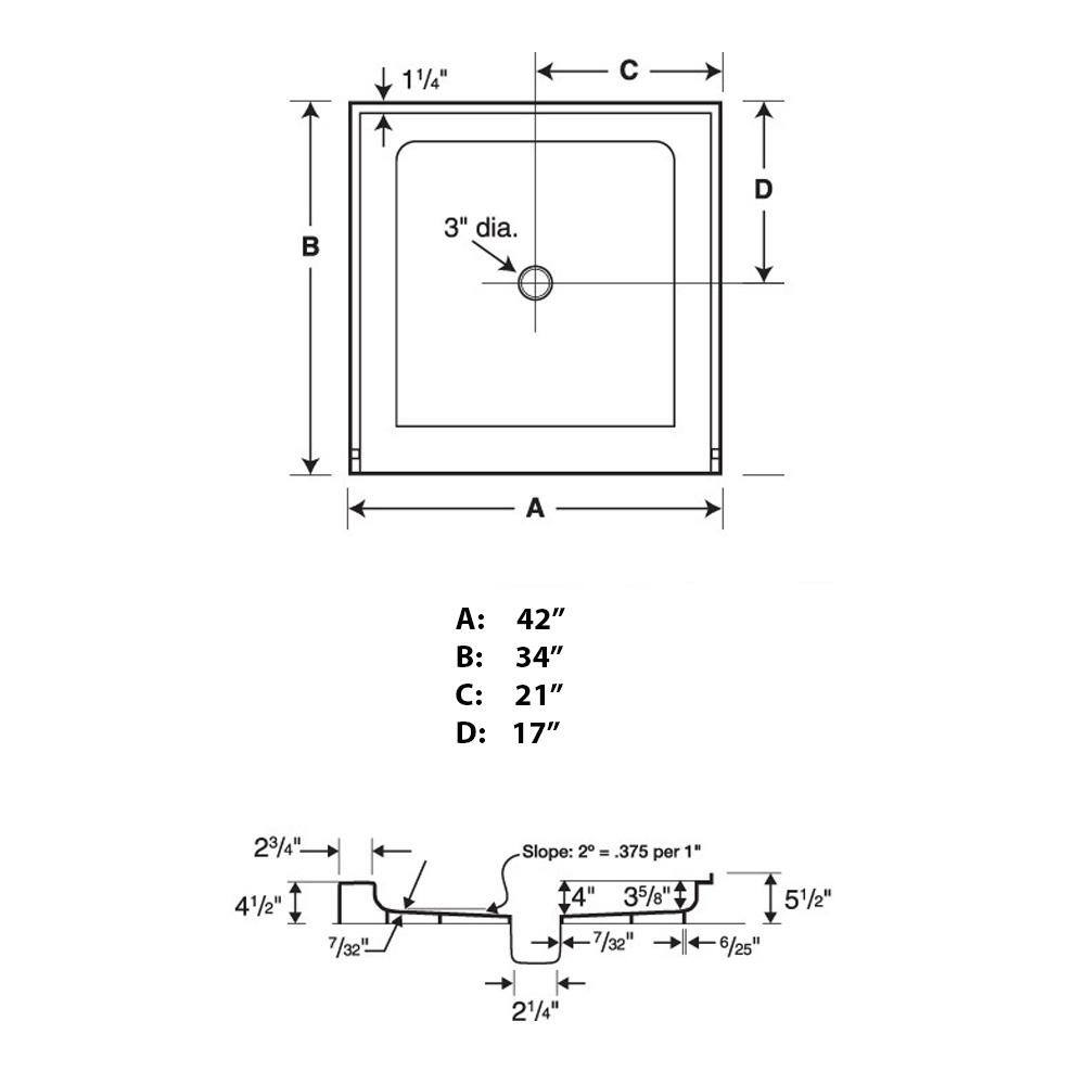Veritek 34 in. x 42 in. Single Threshold Center Drain Shower Pan in White