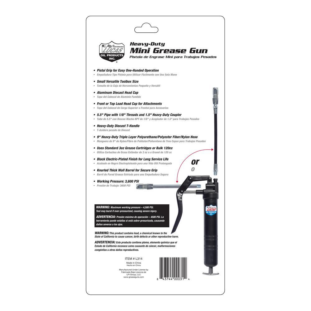 The Lucas Mini Grease Gun delivers high-performance in a compact gun, making it easy to work with in tight spaces. The pistol action enables 1-handed maintenance, while the 3-way loading makes it easy to refill via tube, grease or bulk. As with every Lucas product, the Mini Grease Gun is built with high-quality materials and designed with best-in-class ergonomics. The Lucas Mini Grease Gun is a great tool to have on hand for marine maintenance or other projects with tight spaces.