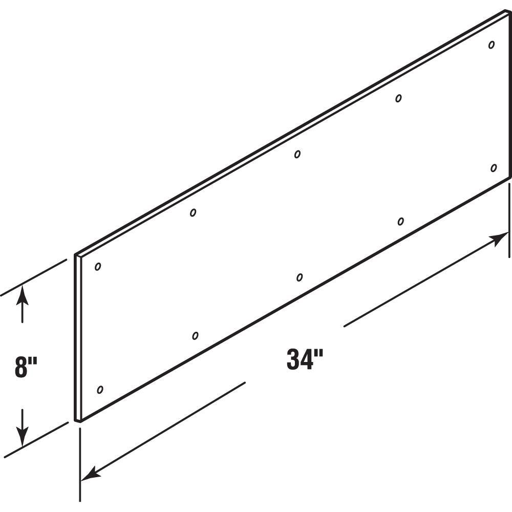 - This kick plate measures 3/32 in. x 34 in. x 8 in. with custom sizes are available through special order from manufacturer