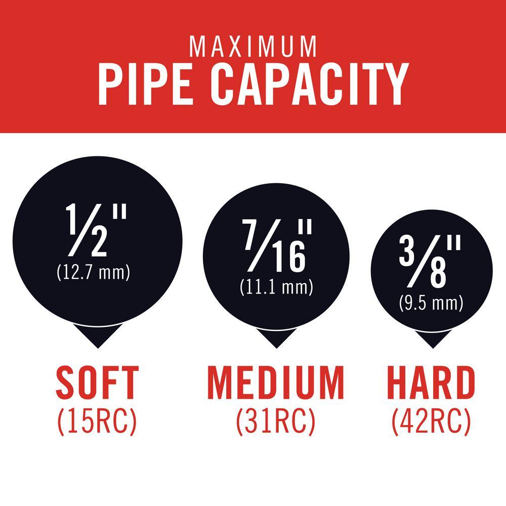 Capacity to cut 1/2 in. soft metals, 7/16 in. medium metals and a 3/8 in. hard metals