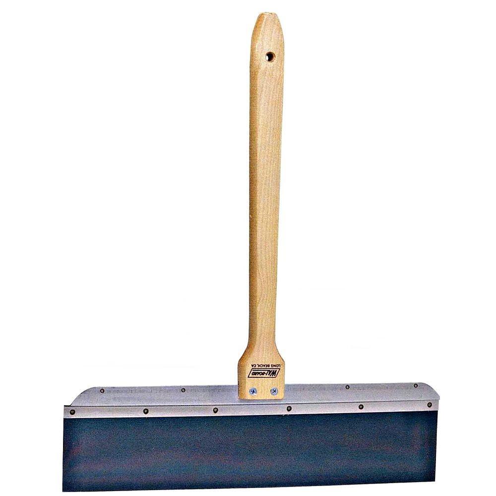 Professional quality blue spring steel ridgeless blade. Fitted with a comfortable 18 in. contoured wood handle. Mounting of lightweight aluminum. Sturdy steel rib prevents the blade from taking a set.