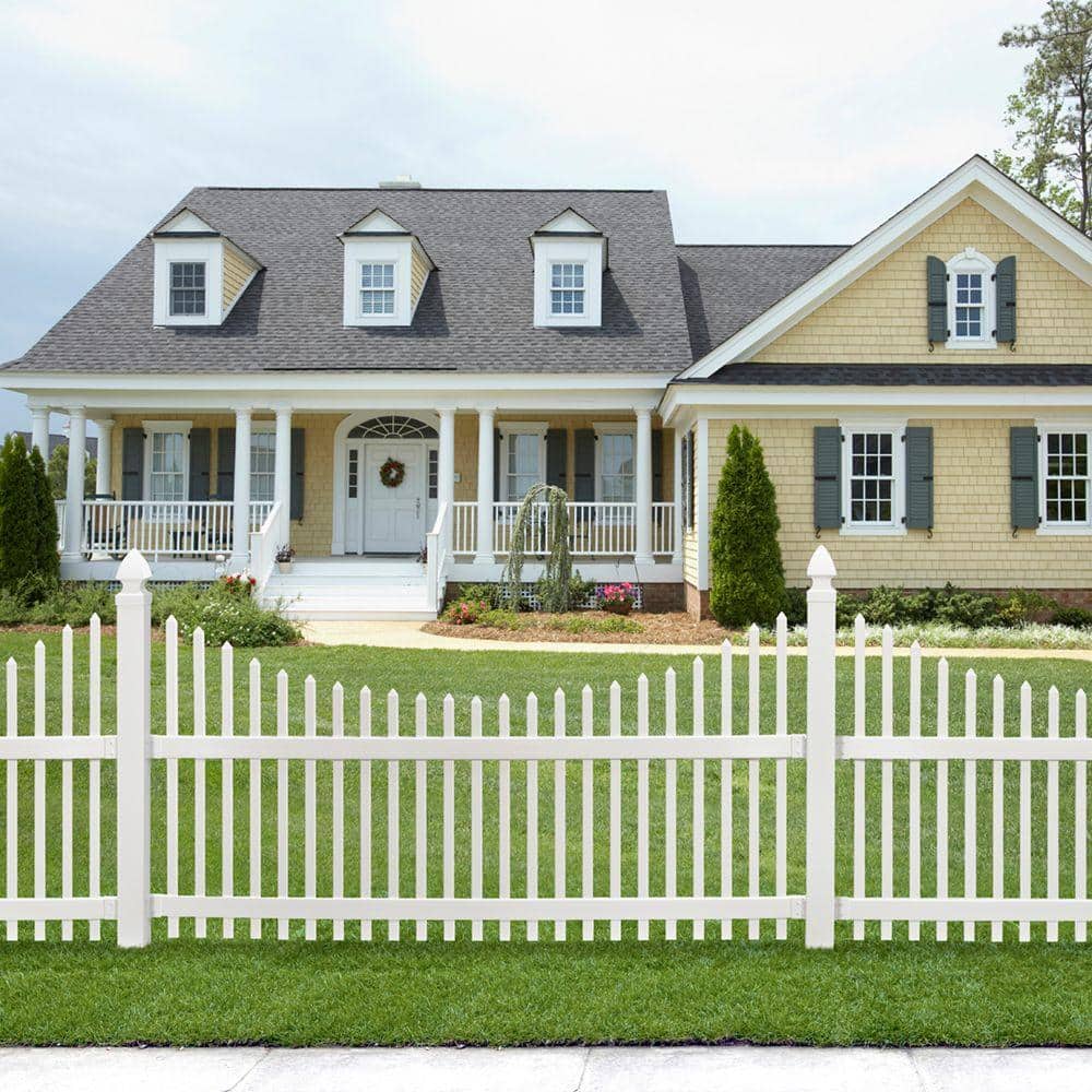 Transform your outdoor space with the Veranda Chatham White Vinyl Scalloped Top Picket Fence Panel. This durable, UV-protected vinyl panel offers an elegant design and versatile functionality, ensuring longevity with minimal maintenance. An ideal choice for enhancing curb appeal while providing a neighbor-friendly fence solution.