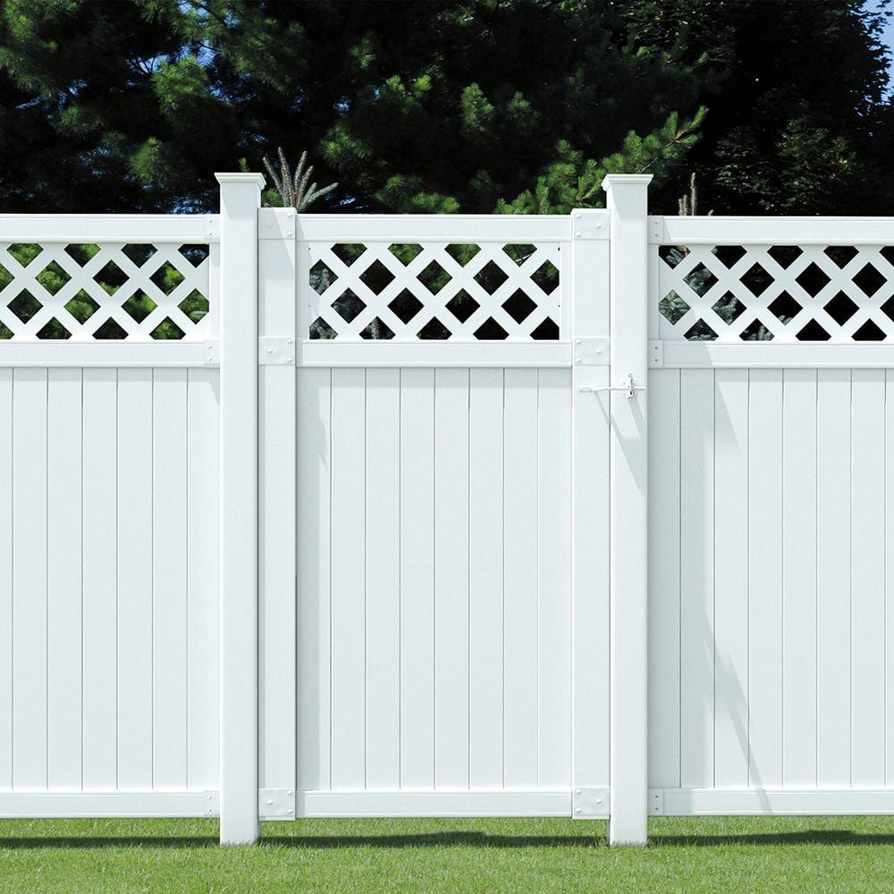 Transform your outdoor area with the Lewiston White Vinyl Lattice Top Fence Panel by Veranda. This low-maintenance fence panel offers enduring durability, with a chic lattice design that complements any outdoor decor. With simple lock-in pickets, installation is a breeze, allowing you to enjoy a stylish and robust fence that withstands the elements.