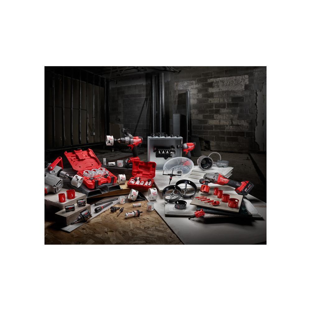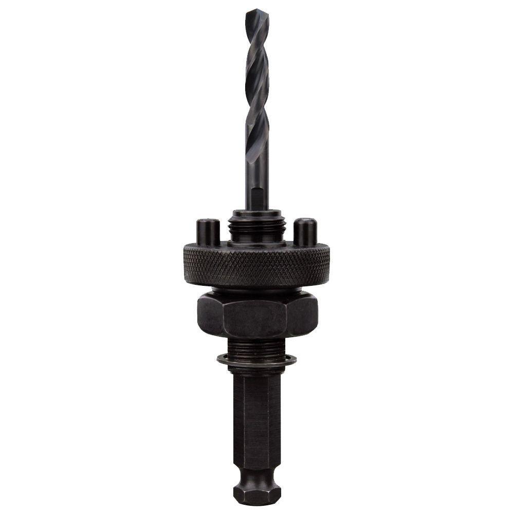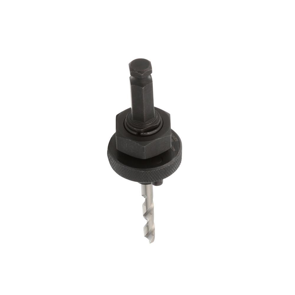 Milwaukee hole saw arbors are made from hardened carbon steel and alloy steel for greater durability. The 49-56-9100 features a 7/16 in. hex shank, which can be used with any 7/16 in. extension. The 49-56-9100 also features a drive plate which is tightened up to the hole saw to eliminate wobble between the arbor and hole saw.