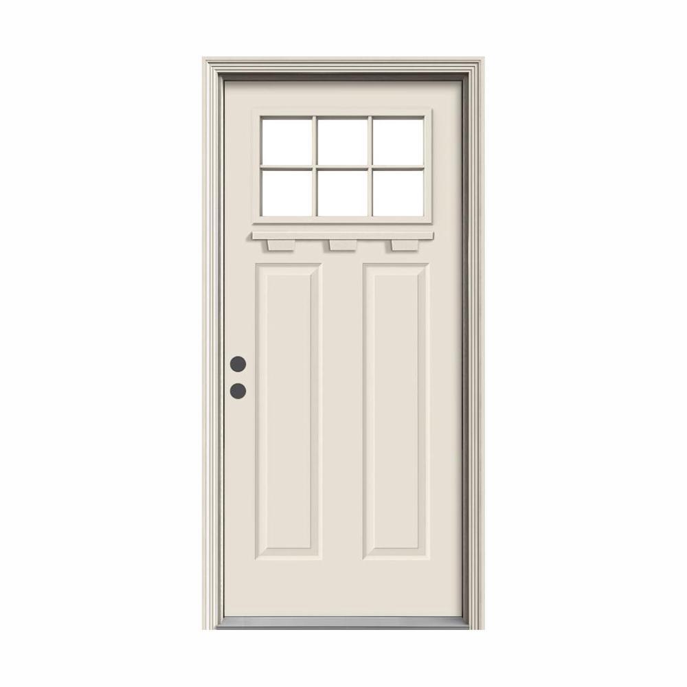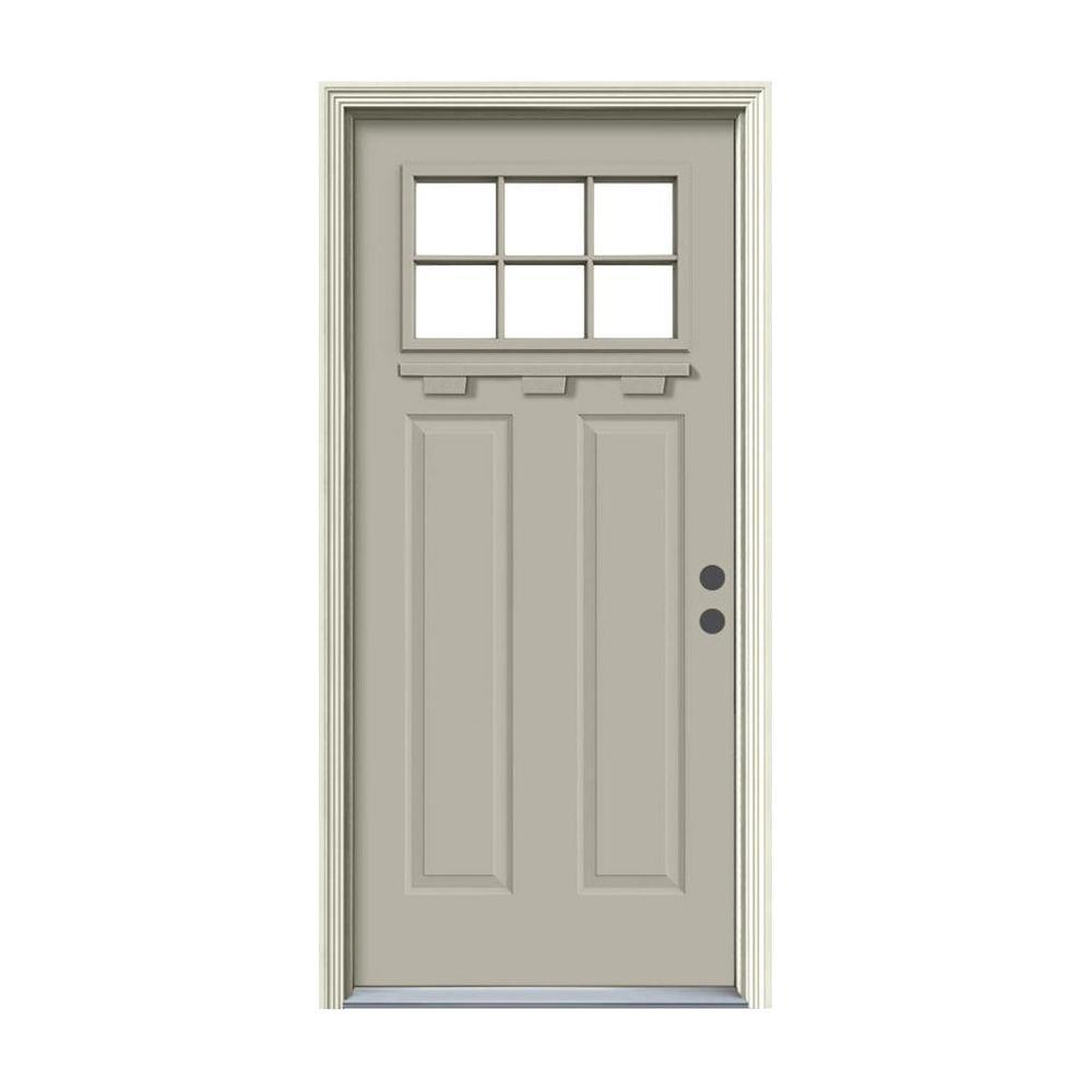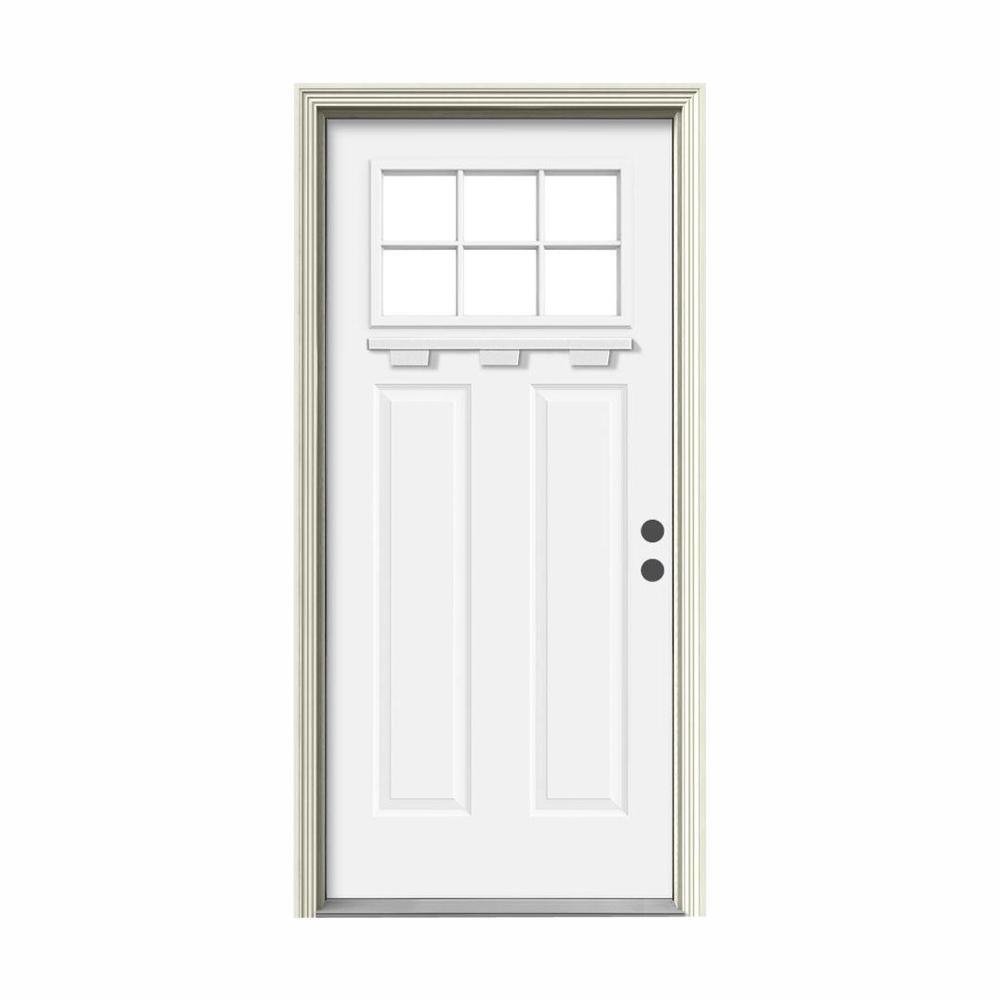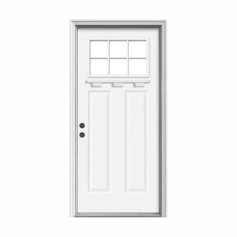 36 in. x 80 in. 6 Lite Craftsman Primed Steel Prehung Left-Hand Inswing Front Door w/Brickmould and Shelf"