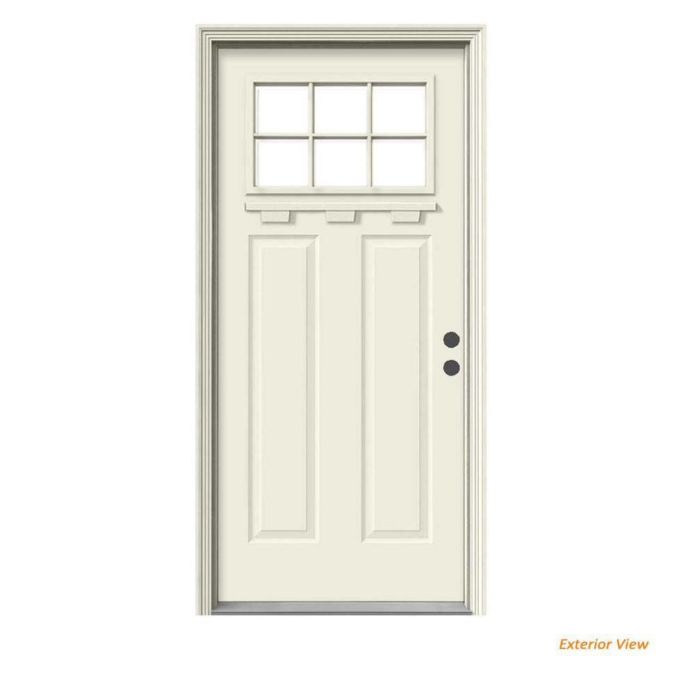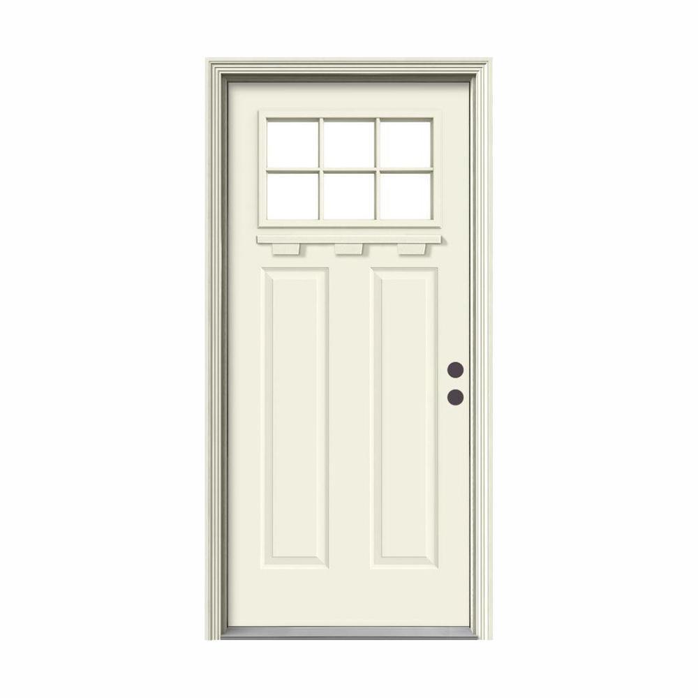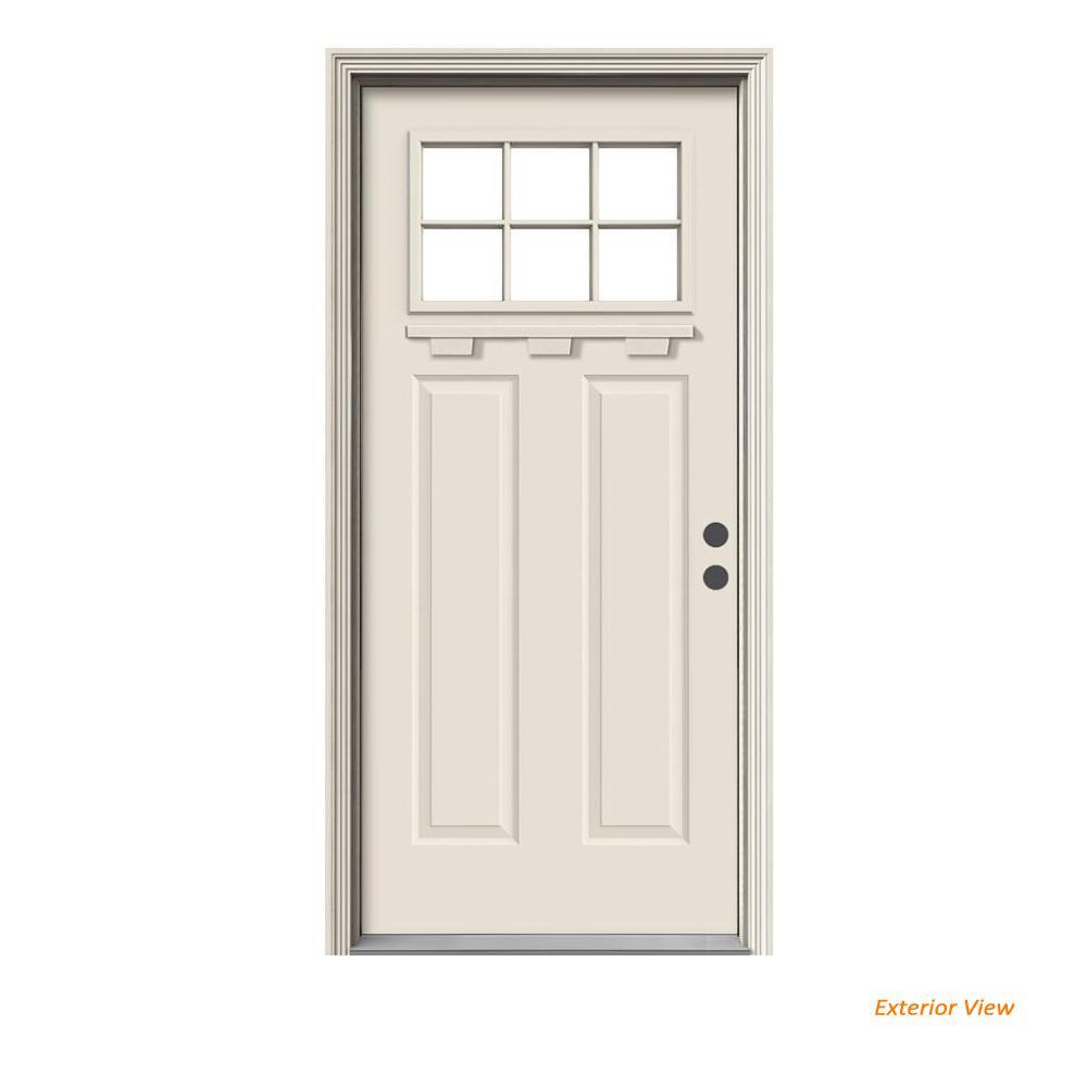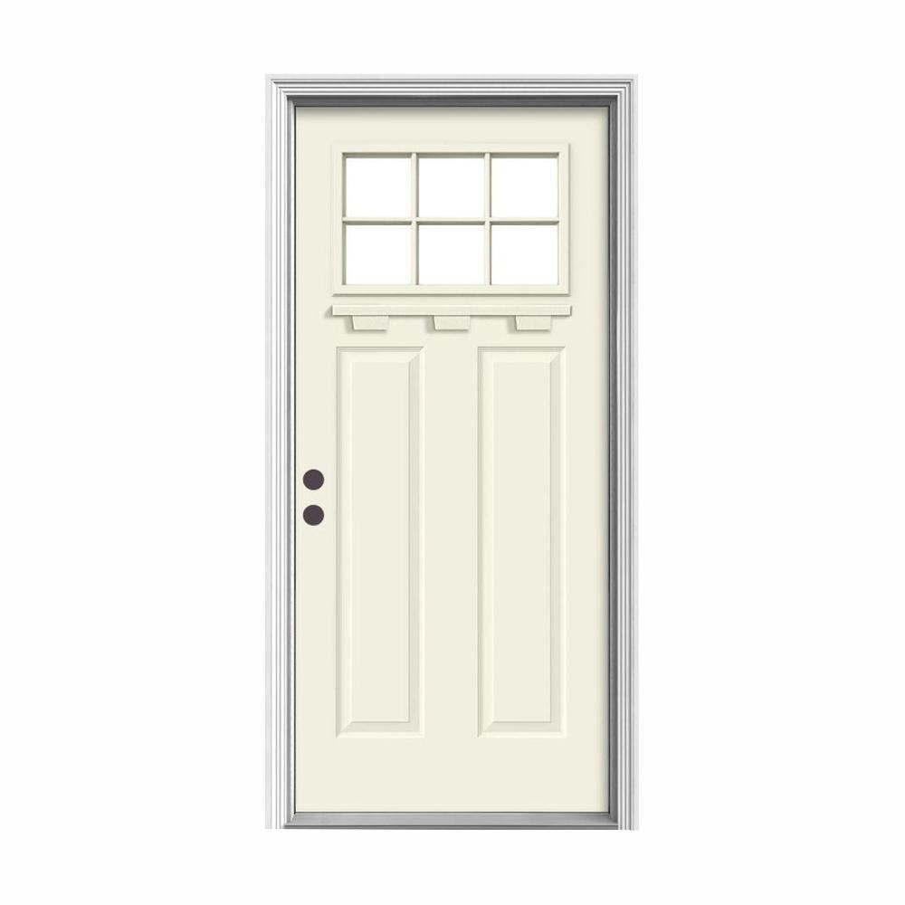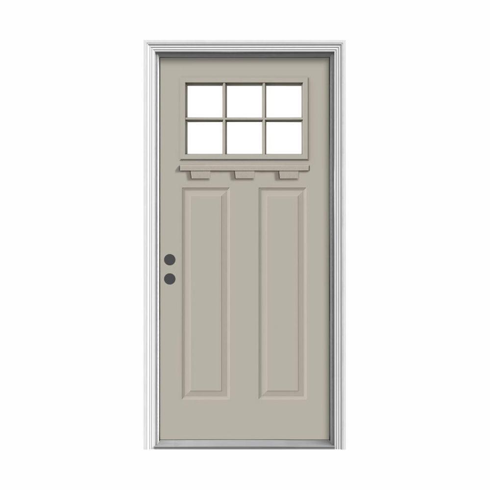 36 in. x 80 in. 6 Lite Craftsman Primed Steel Prehung Left-Hand Inswing Front Door w/Brickmould and Shelf"