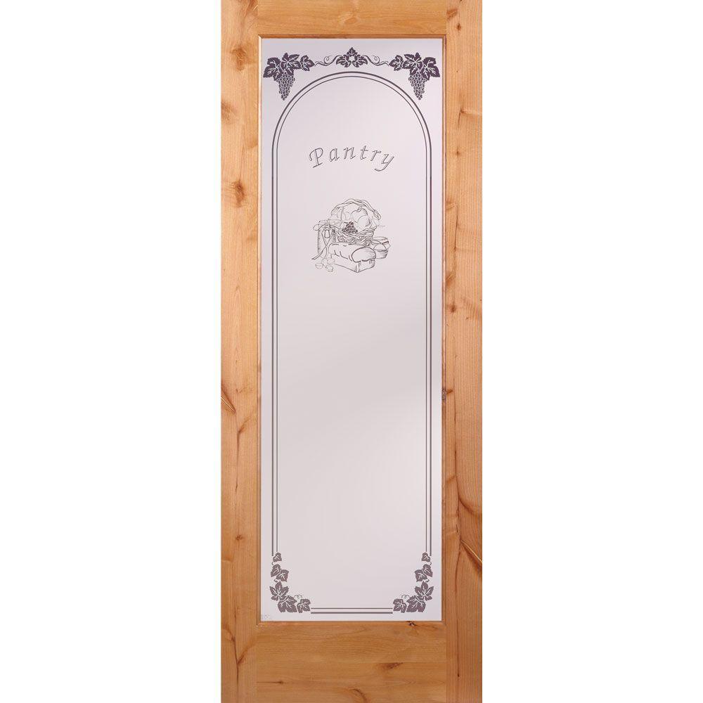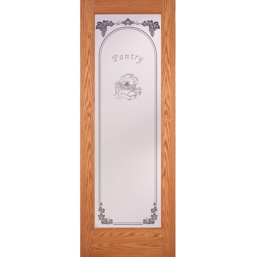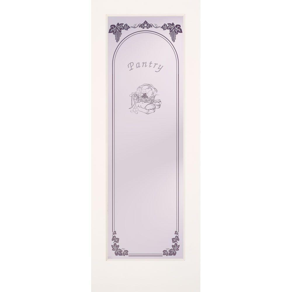 Part of the Theme collection, the 30 in. x 80 in. Pantry Smooth 1 Lite Primed MDF Interior Door Slab features script Pantry text and ornamental designs on the glass that will add instant style and charm to your kitchen. It creates a visual divider but allows ambient light to filter through, giving you the best of both worlds. It is constructed with primed medium-density fiberboard (MDF) veneers over an engineered core and features full lite safety tempered glass for superb functionality and performance. Suitable for interior use only, it is NOT prepped for hinges or a handleset but it is reversible for left- or right-handed opening. Coordinate this attractive pantry door with your decor by painting it a color that complements your surroundings.