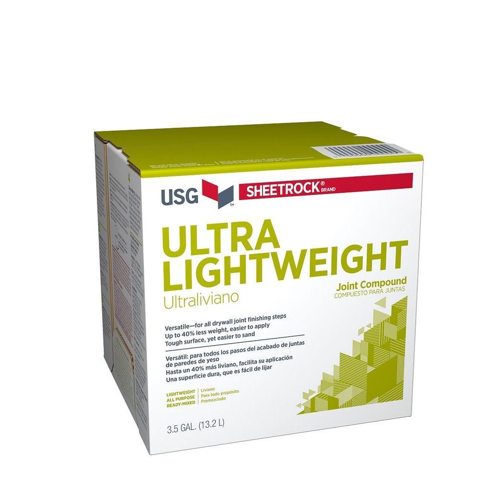 With up to 40% less weight than conventional-weight compounds, Sheetrock brand Ultra Lightweight All-Purpose 4.5 Gal. Joint Compound is an exceptionally lightweight compound for all drywall finishing steps. It provides overall high performance, as well as superior working qualities and good open time. It offers excellent bond over bead, trim and fastener concealments.