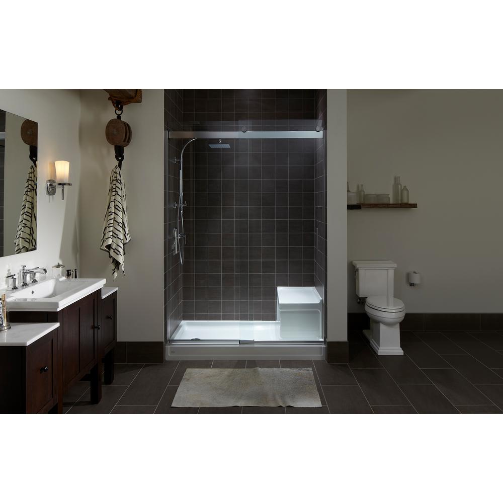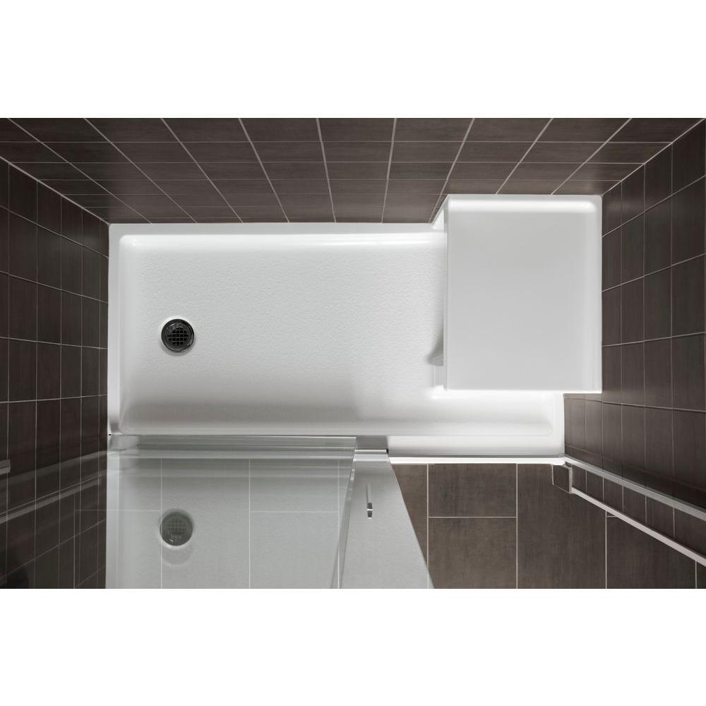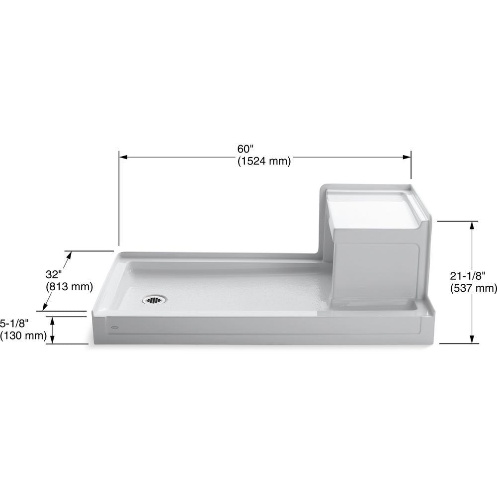 With crisp lines and an elegant border, this Tresham shower base brings classic American design to the bathroom. Designed for comfort, this base comes with a built-in seat and low threshold for easy access. Available in a palette of KOHLER colors to complement any decor.