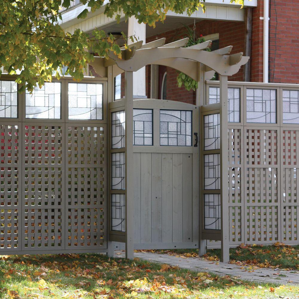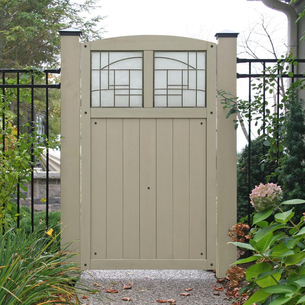 Traditional craftsman styling and time tested construction techniques give Yardistry’s line of gates both outstanding performance and visual elegance. All gates ship as a single pre-assembled unit that is ready to hang the moment they are delivered. This style of gate comes with two contemporary faux stained glass panels and is pre-stained in a warm shade of grey. Yardistry’s gates, like all Yardistry projects, are manufactured from exterior grade cedar (Cunninghamia Lanceolata). Cedar was chosen as the building material of choice as Cedar is more naturally resistant to rot and decay than other wood species, it is very structurally sound and it has a lifespan comparable to that of manmade synthetic materials such as vinyl. The factory applied stain provides additional protection against the elements and coats the gate in a rich shade of warm grey.