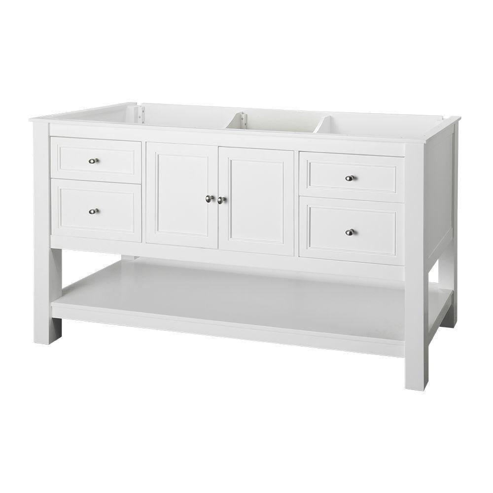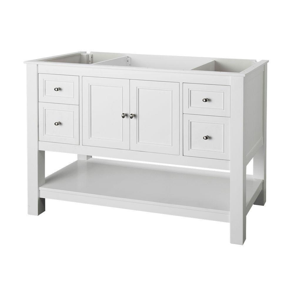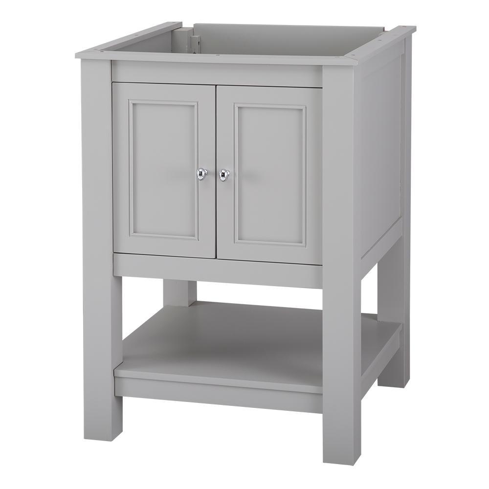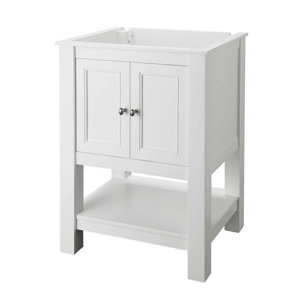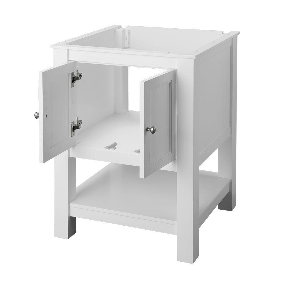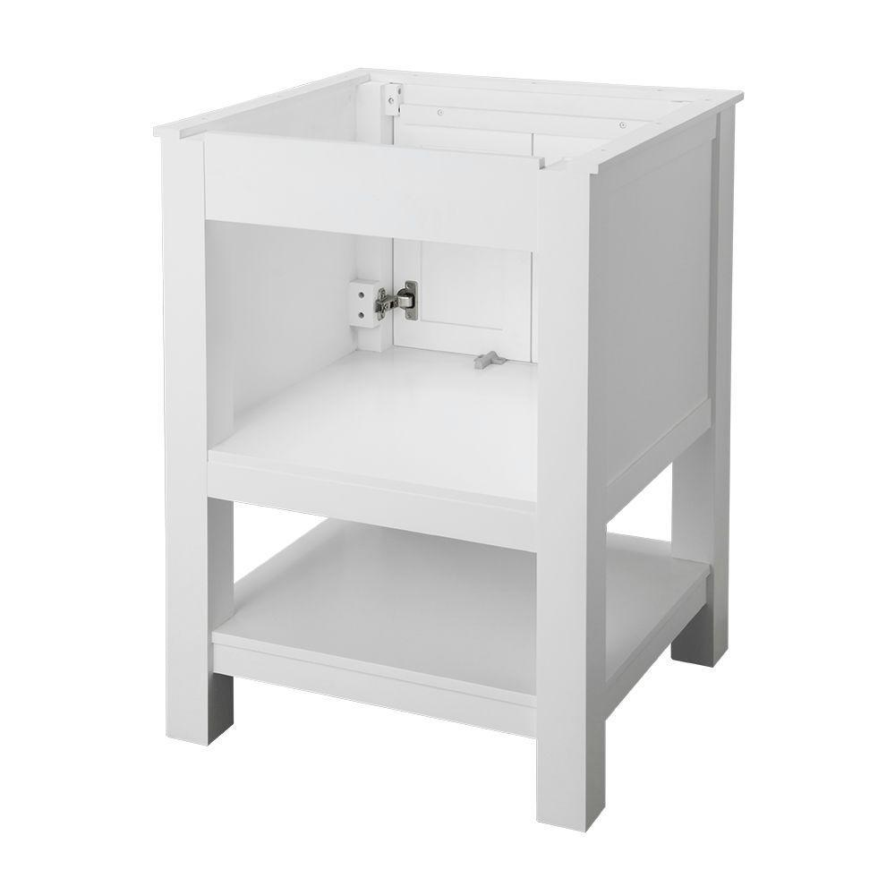 Modern and traditional influences combine to form a 24 in. console-style vanity that projects a simple, understated elegance. This cabinet's clean lines and white finish will make any bathroom gleam, while an open lower shelf promotes a spacious feel. Ample storage options exist within this furniture-style piece, outfitted with two doors-each with a soft-stop bumper to prevent slamming. Distinctive design characteristics and quality craftsmanship give this bathroom vanity a custom-built look that will impress homeowners and guests alike. Scan the Foremost Gazette White collection for complementary mirrors, wall shelves and/or floor cabinets to make your powder room shine.