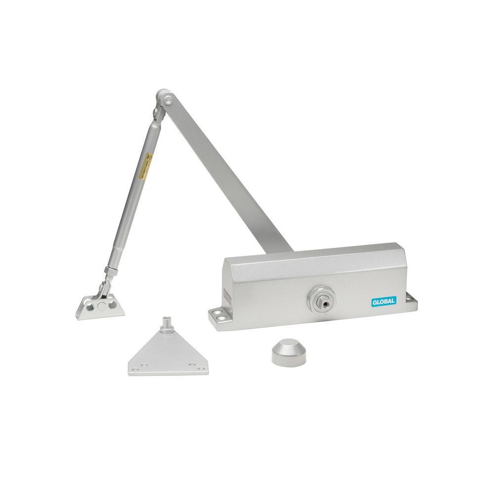 The global door controls TC2203 commercial door closer comes with a size three spring tension and in a sleek aluminum finish. The closer is recommended for use on all aluminum store front doors, wood or hollow metal commercial applications. It is a versatile utility closer that provides narrow styling. For doors weighing up to 155 lbs.