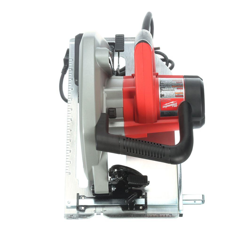 Don’t take a knife to a gunfight. The most rigorous jobs call for the most powerful and dependable tools, and Milwaukee delivers with this peppy 15 Amp circular saw. The motor cranks out 5200 RPM that will spin consistently even under duress; conversely, a quick shutdown is powered by an electric brake. Angular cuts are a cinch with 60° bevel capacity and a 3-13/16 in. depth-of-cut capacity at 90° allows for deep grooves. Count on the aircraft aluminum shoe to withstand warping or bending in extreme conditions.