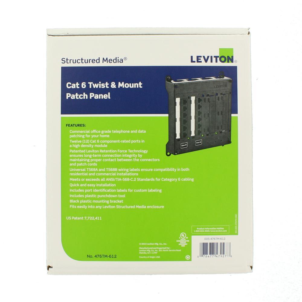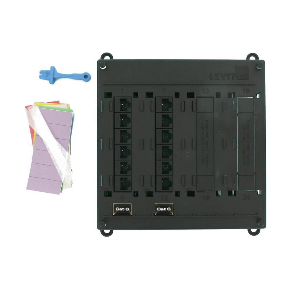 Leviton's six Twist & Mount Patch Panels are designed for use in any of Leviton's existing Structured Media Centers to support a variety of telephone and data distribution needs. These panels hold patching modules, which allow 12 ports of patching capability to CAT 6 cabling. The CAT 6 ports are designed for use in high megabit applications such as Gigabit Ethernet.