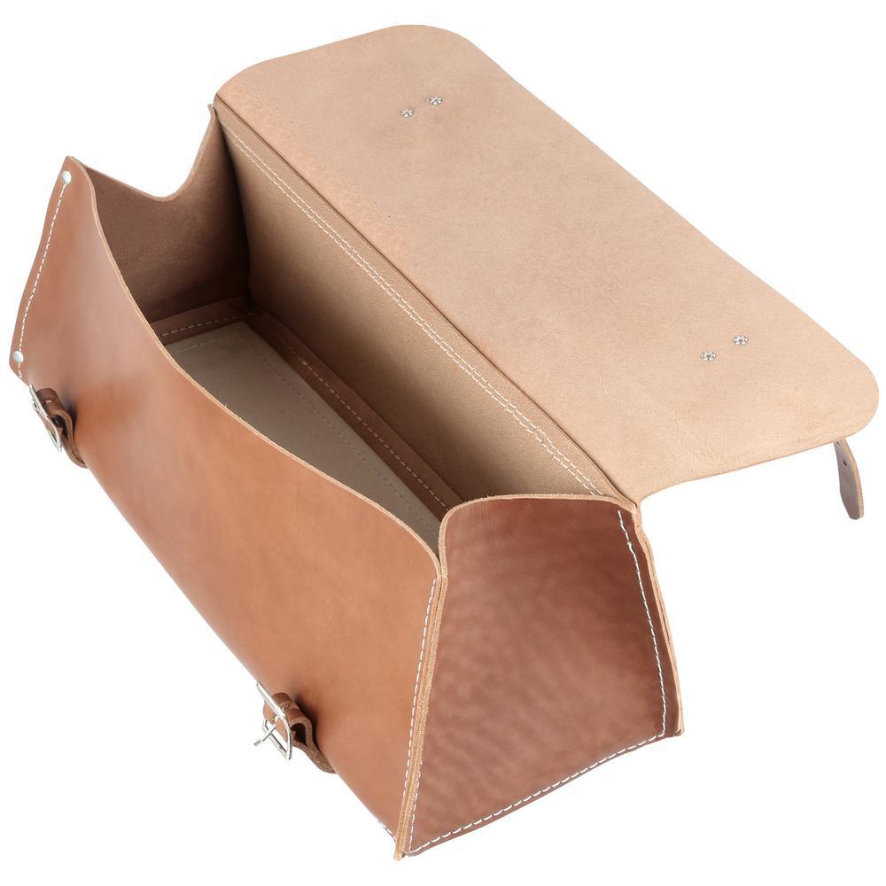 Great bag if you want to bring a select group of tools to a job and leave the rest in the box. Made of extra-heavy leather, this rugged tool bag has a three-ply bottom with steel studs for extra durability. Lightweight and portable.