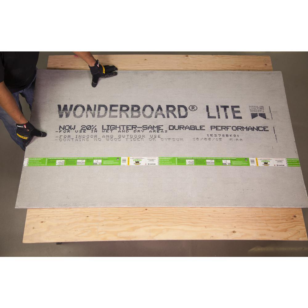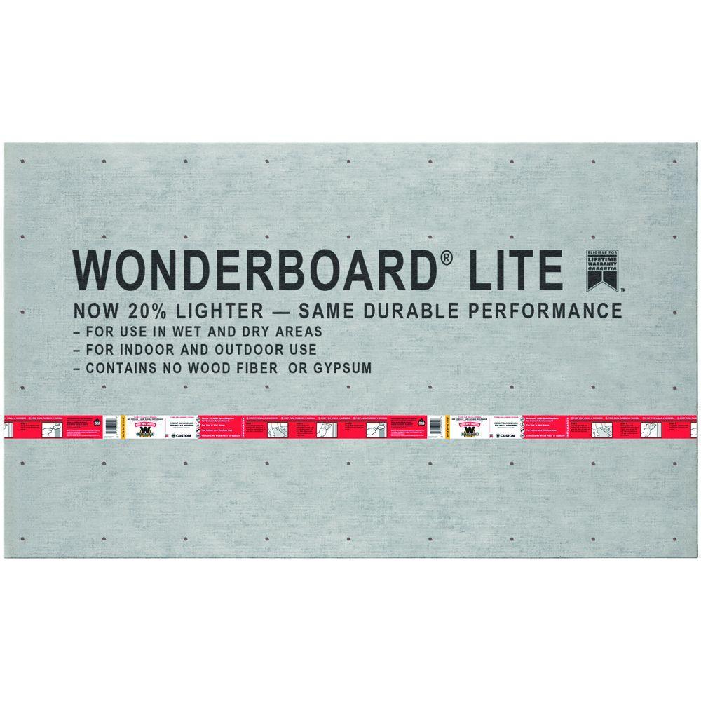 The Custom Building Products WonderBoard Lite 5 ft. x 3 ft. x 7/16 in. Backer Board provides a stable surface for installing tile or stone and protects against moisture. Ideal for both interior and exterior substrate applications. Protects against excessive moisture in wet areas such as showers, saunas and steam rooms.