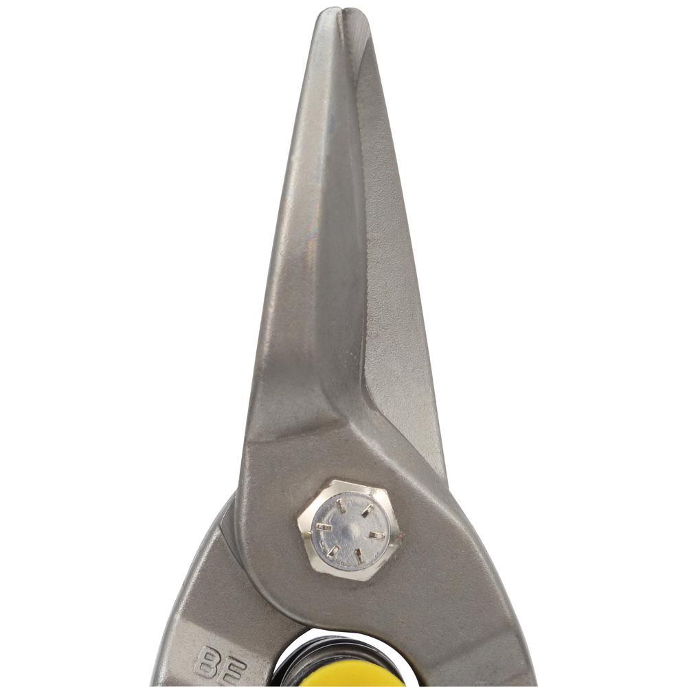 The FatMax Straight Cut Compound Action Aviation Snips can cut rolled steel up to 18-gauge or 23-gauge stainless steel. The blades are constructed from chrome molybdenum steel and designed with serrated edges for a secure bite on the material being cut. With 1-handed operation and a slip-resistant grip, these snips are safe and easy to use on a wide range of jobs.