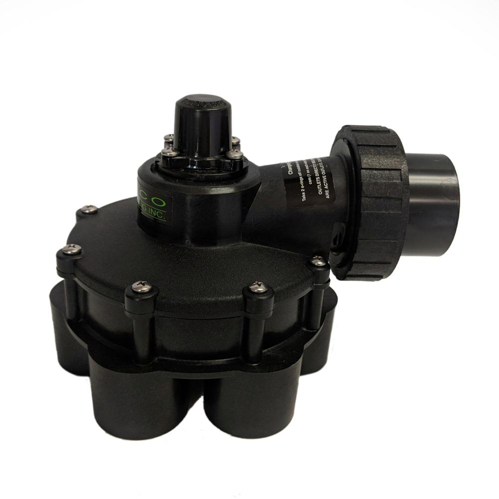 The 1-1/4 in. Standard 6 Outlet Indexing Valve offers a reliable and economical way to automate multiple zoned irrigation systems. This Hydro Indexing Valve has an 1-1/2 in. inlet and 6-1¼ in. outlets, all are slip fit. The simple design of the indexing valve ensures easy installation and maintenance.