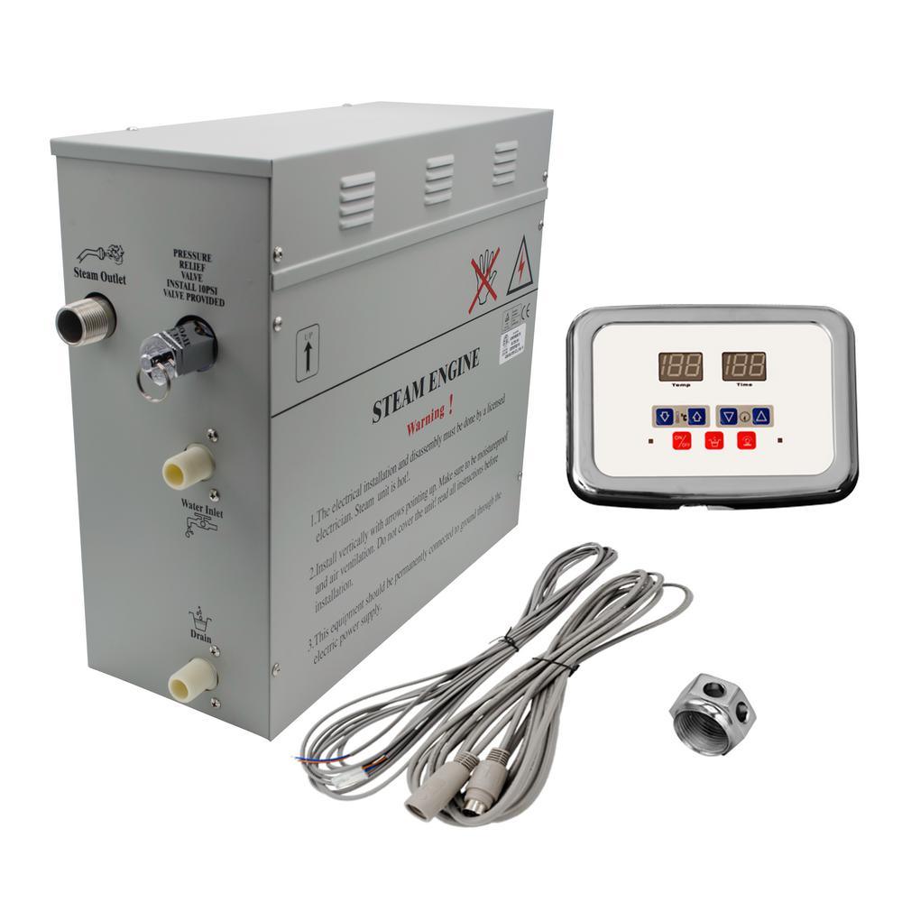 6kW Self-Draining Steam Bath Generator with Waterproof Programmable Controls and Chrome Steam Outlet