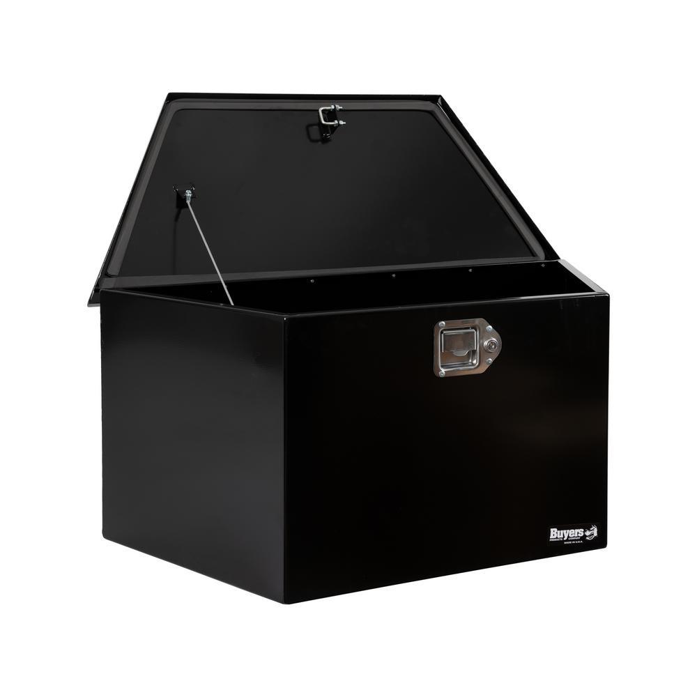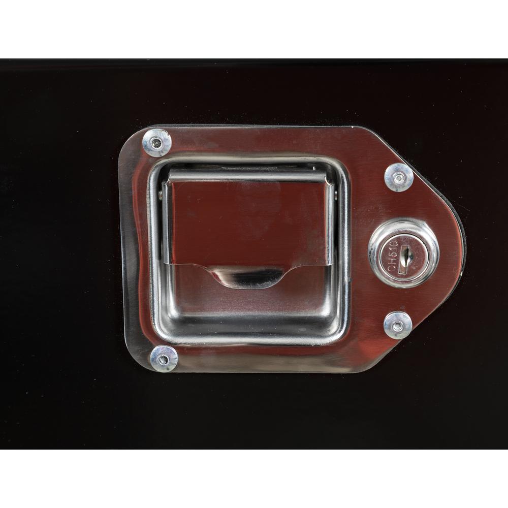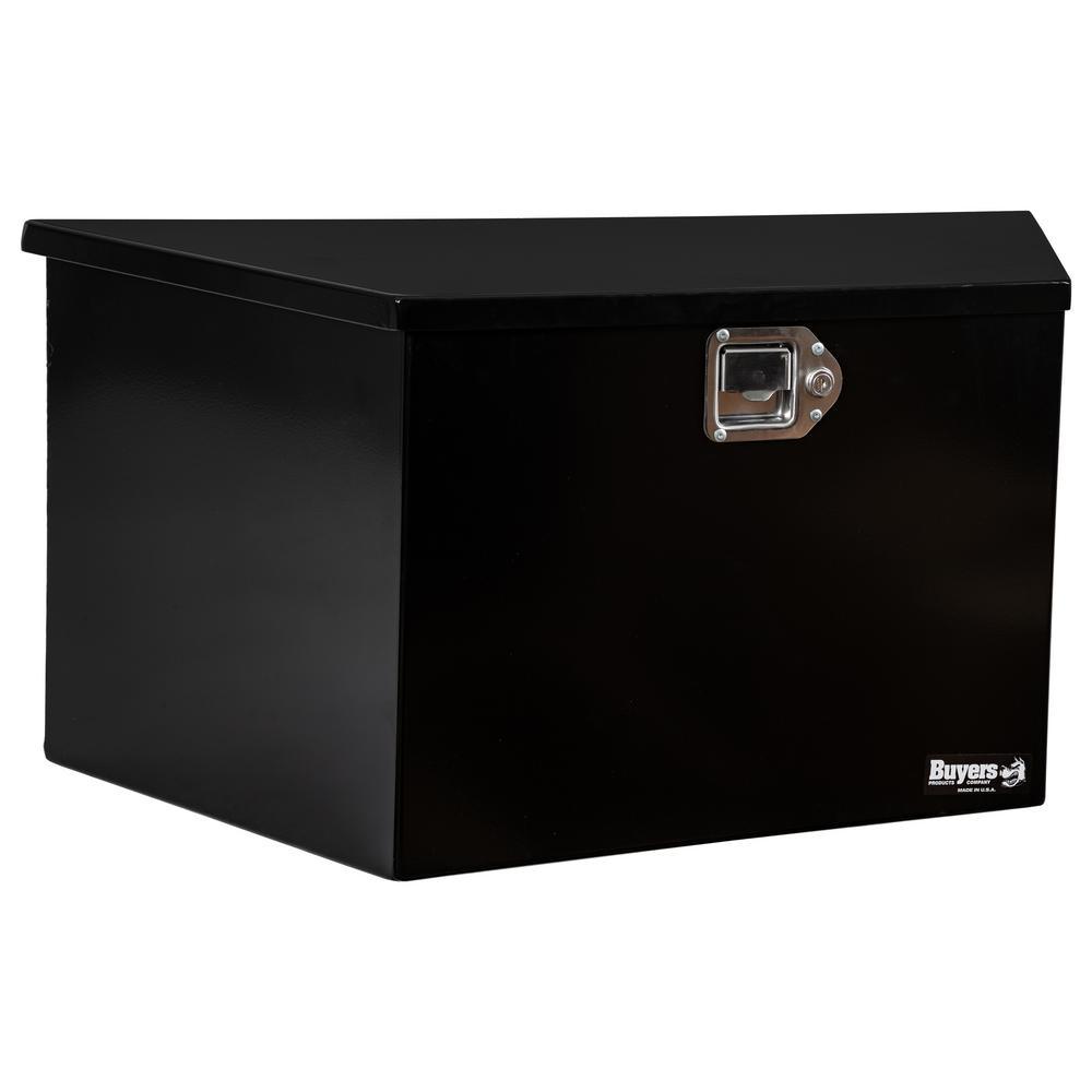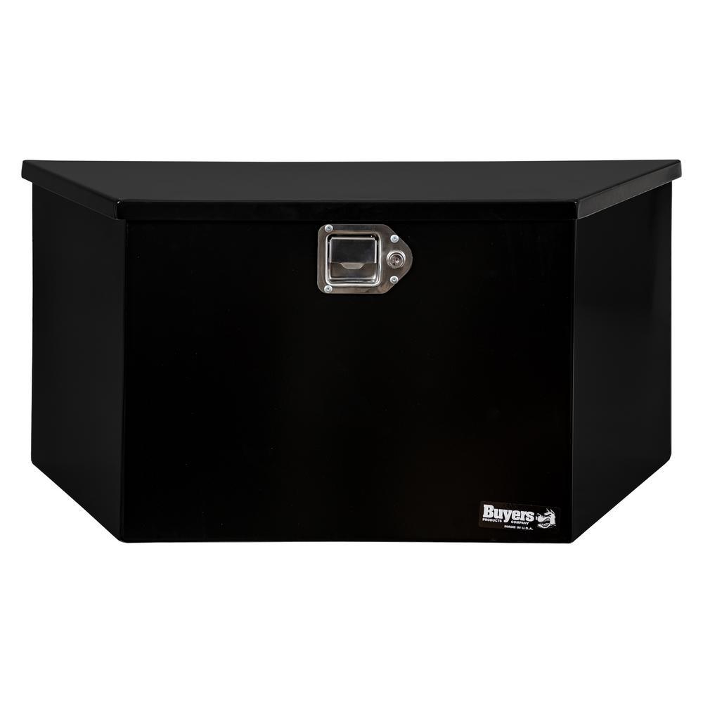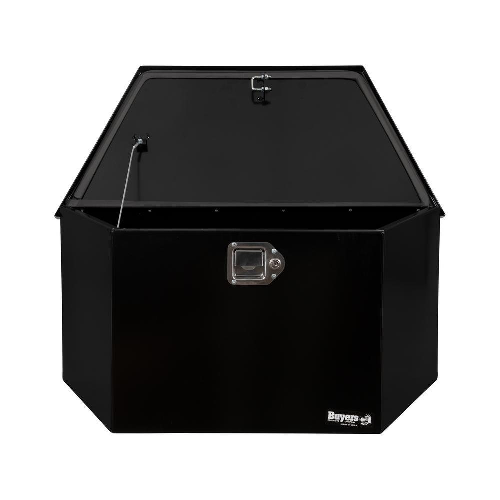 Buyers Products Black Steel Trailer Tongue Truck Tool Box is designed for mounting on the front of A-frame trailers. Contents stay safe and protected with a locking stainless steel paddle latch and weather-resistant steel continuous hidden hinge.