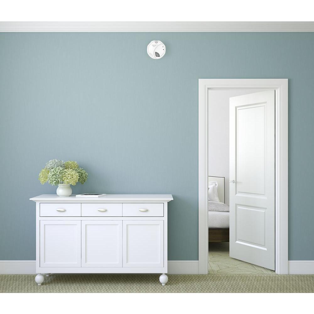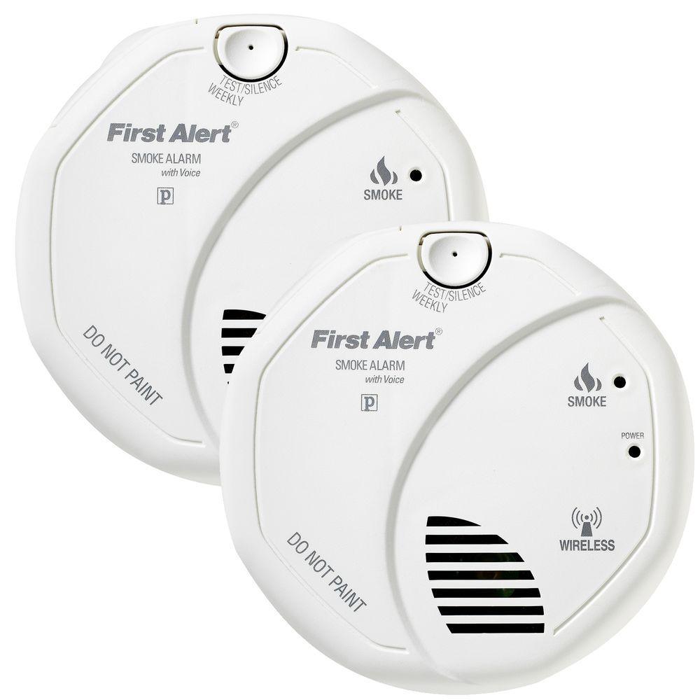 The Wireless Smoke Alarm detects smoldering fires and has a voice alarm that's proven to wake children up better than standard alarms. It also has a horn tone with low frequencies for the hearing impaired and elderly. This alarm will sound if it detects smoke even during power outages. It uses a secure radio frequency to communicate between alarms, which are perfect for linking alarms on different floors or in stairwells. No wires necessary and it's programmable with up to eleven locations. Other features include a test and silence button, a latching indicator that remembers which unit initiated the alarm and smart technology that helps reduce false alarms. The SA511B can be connected to other smoke alarms and offers 360˚ access to the smoke sensor. If one unit triggers an alarm, all smoke alarms in the series will sound. The SA511B features a perfect mount system for perfect alignment, a low battery latch and (2) silence features. The Wireless Smoke Alarm is warranted to the original purchaser for a period of 10 years. First Alert invests time and research into providing dependable and hardworking products. Committed to innovation and value, First Alert improves safety in and around the house. This product comes in a 2-pack.