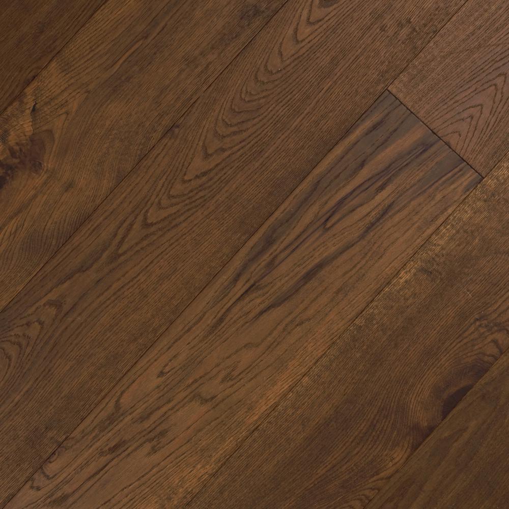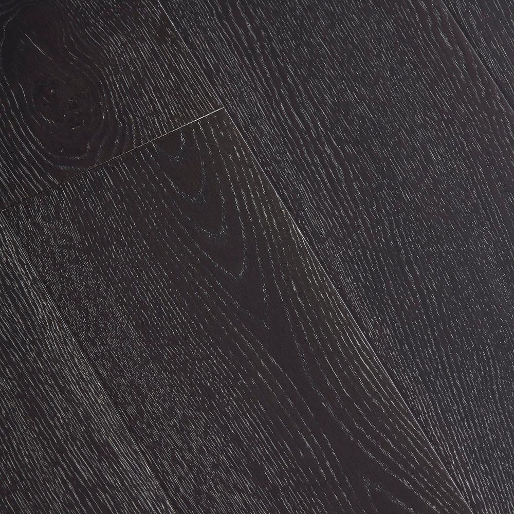 Wire Brushed Oak Coffee Click-Lock Hardwood Flooring adds a cozy warmth to any home interior. The natural woodgrains, featuring unique patterns and a hand-scraped finish, bring a rustic charm to your space. With a thickness of 3/8 in. and the option to install with glue or as a floating floor, these planks are suitable for any level of your home. The seven-layer aluminum oxide finish provides protection against wear and tear, making it durable for your family's daily foot traffic. This product is GREENGUARD Indoor Air Quality certified, passing tests for more than 10,000 volatile organic compounds including formaldehyde. The wood species is white oak, with a thickness of 3/8 in., width of 5 in., and varying lengths up to 47-1/4 in. Each case contains random length planks equal to 19.686 sq. ft., with a quantity of 12 and weight of 30 lbs.