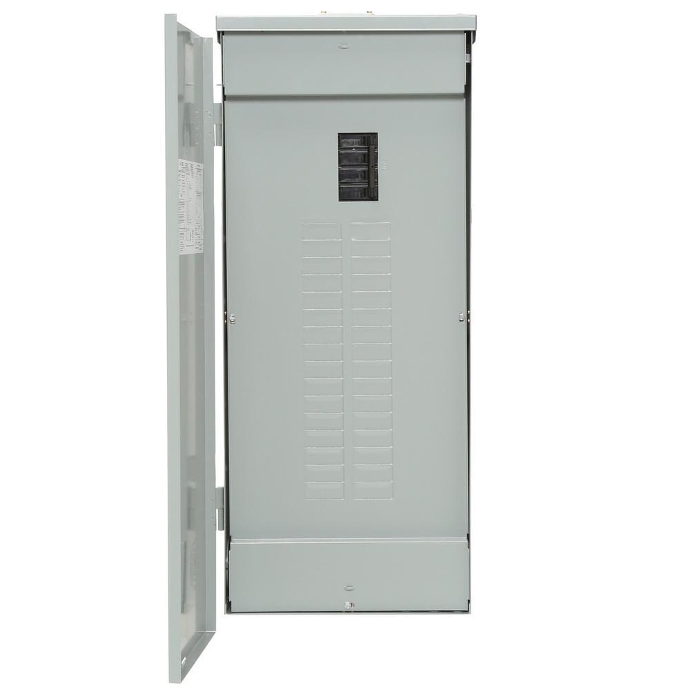 The GE PowerMark Gold 200 Amp 32-Space 40-Circuit Main Breaker Outdoor Load Center Contractor Kit is pre-packaged with a selection of circuit breakers. The UL-listed load center has holes rated 100% split neutral on each side that are compatible with #14-4 wire. The breaker box is a single-phase, 3-wire unit with a factory-installed main breaker. The center is designed and built for faster installation and a more dependable performance. This unit is compatible with GFCIs, AFCIs and standard circuit breakers.