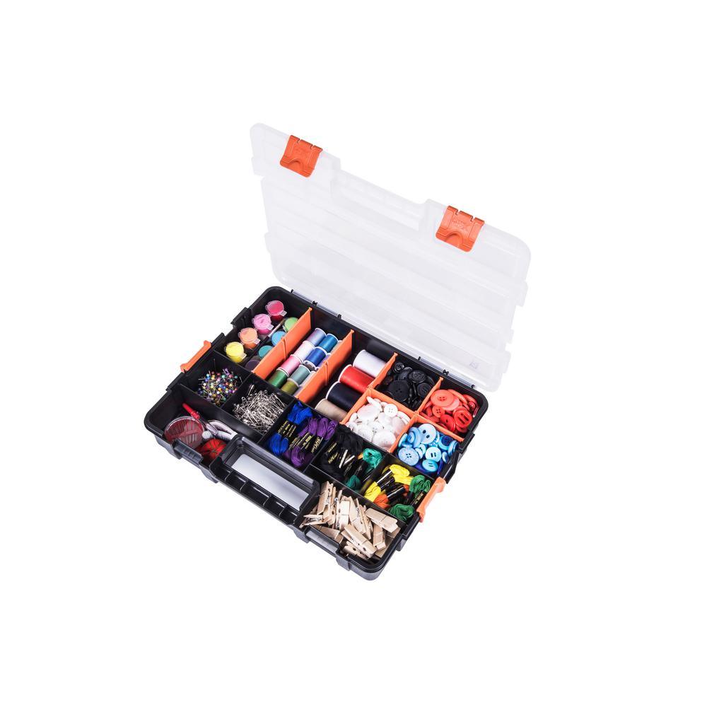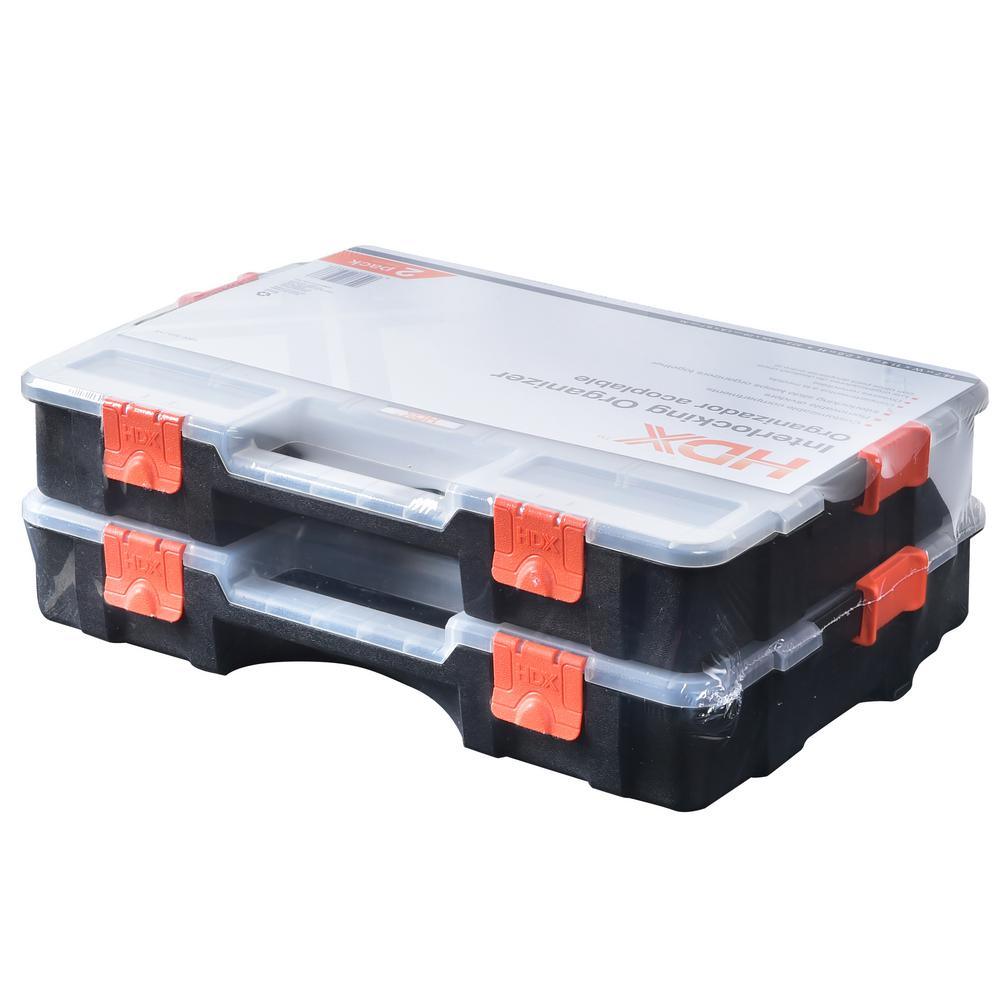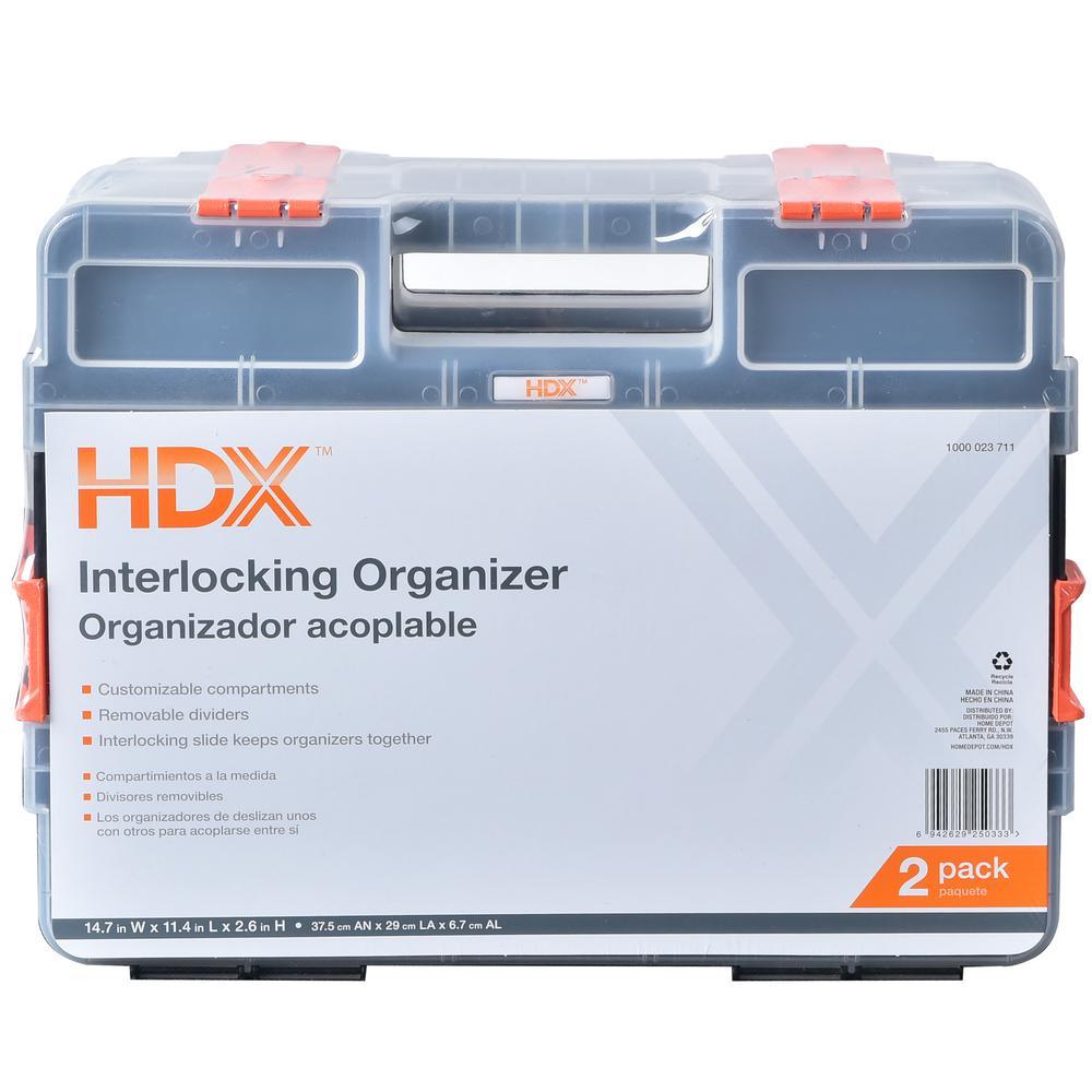 The HDX 15-Compartment Interlocking Small Parts Organizer is ideal for storing hardware and small parts. The removable dividers enable custom storage, a great way to make sure each small part has enough room within the organizer. These organizers come in a two pack and be easily locked together with up to a total of three organizers. This interlocking organizer is perfect for professional or home owner who has various nuts, bolts, nails, screws, tacks, paper clips and any other small items that need organization. This organizer is also frequently used for craft hobbyist as a great way of storing small items.