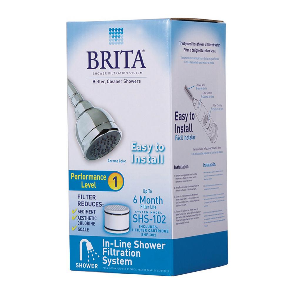 Minimize the effects of chlorine in your shower with this chrome showerhead with filter from Brita. The stylish fixture fastens easily to your existing water supply line and helps you achieve sudsy cleansing in the shower for up to six months. It includes one replaceable filter that is designed to drastically reduce chlorine and sediment for healthier, odor-free showering that leaves you feeling cleansed and refreshed.