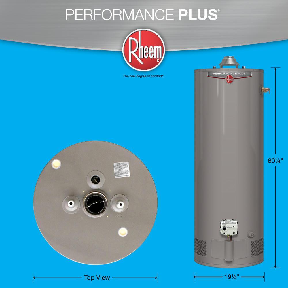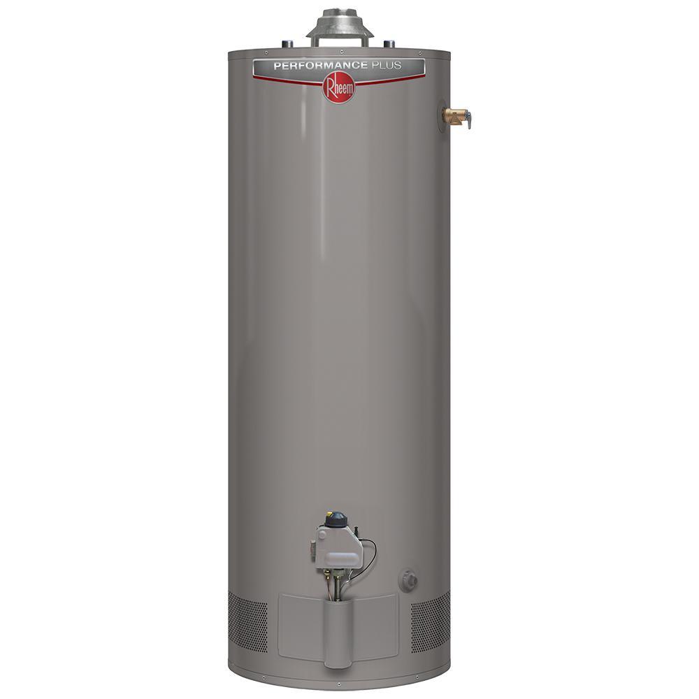 The Rheem Performance Plus 40 Gal. Natural Gas Tall Water Heater comes with a 40,000 BTU/hour environmentally friendly low NOx burner that provides ample hot water for households with 2 to 4 people. The push button ignition system ensures safe and easy startup. Its maintenance free combustion air intake system means there are no filters to clean and replace. A premium grade anode rod provides long-lasting tank protection. Factory installed temperature and pressure relief valve and 3/4 in. water connections are included with the water heater for easy installation.