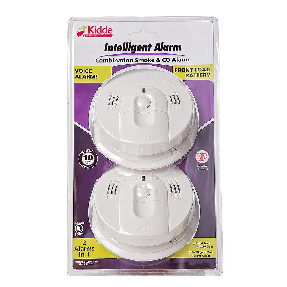 Kidde's Intelligent Alarm combines the detection capabilities of an ionization smoke sensor - which is more likely to detect smaller, less visible fire particles, like those produced by flaming fires - with that of an electro-chemical sensor, which is used to detect CO. The intelligent alarm uses breakthrough technology to offer a fast response to real fires, including smoldering and fast flaming fires as well as, offers protection against carbon monoxide. The voice warning feature alerts you to the type of danger present.
